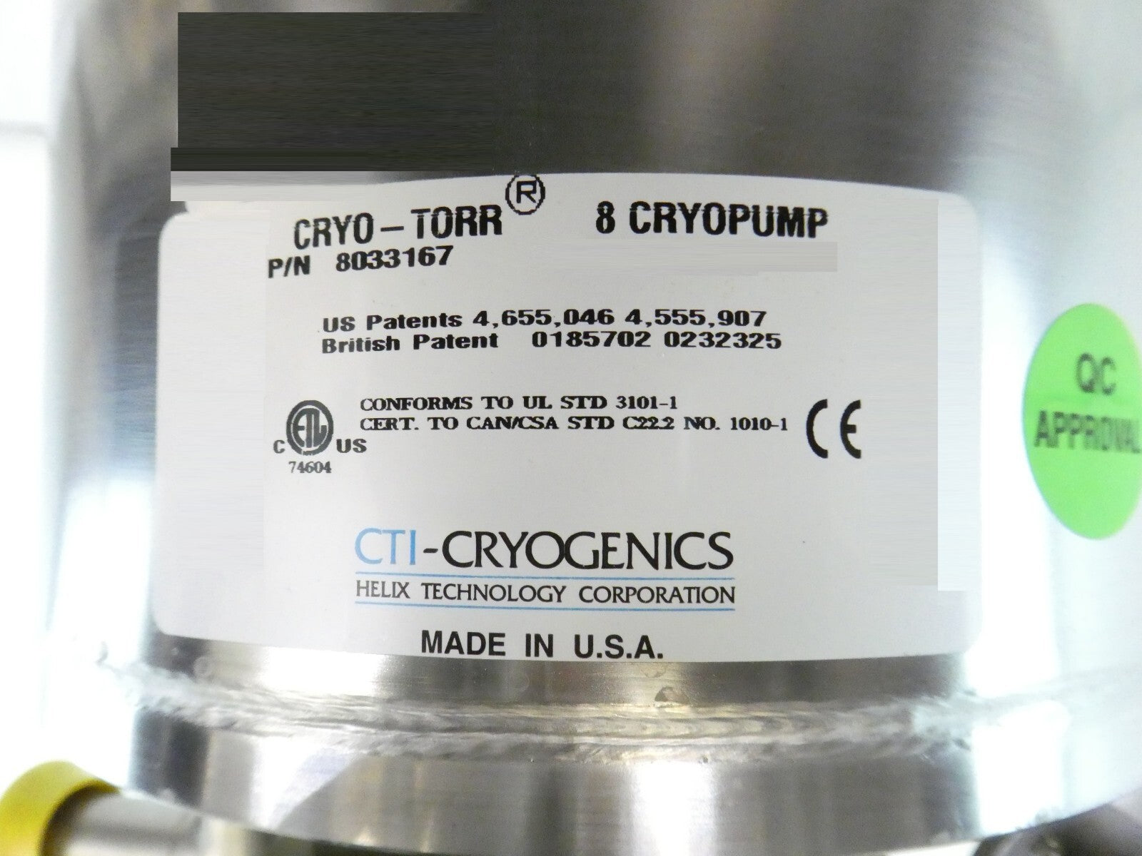 CTI-Cryogenics 8033167 High Vacuum Pump CRYO-TORR 8 CRYOPUMP Spare Surplus