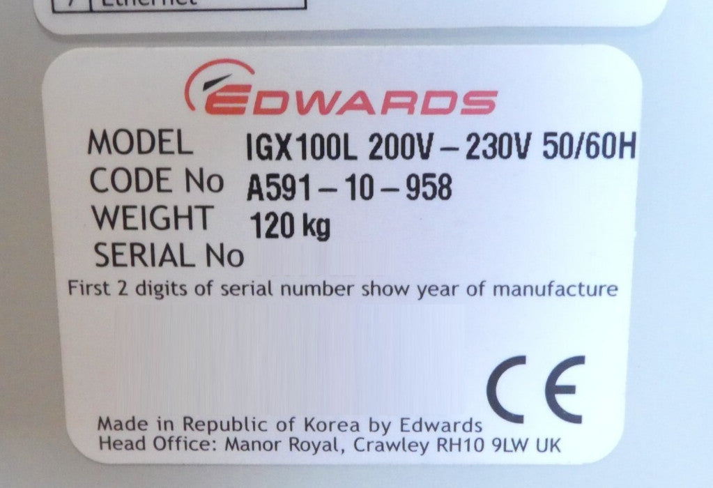 iGX100L Edwards A591-10-958 Vacuum Pump IGX 100L Manufacturer Refurbished