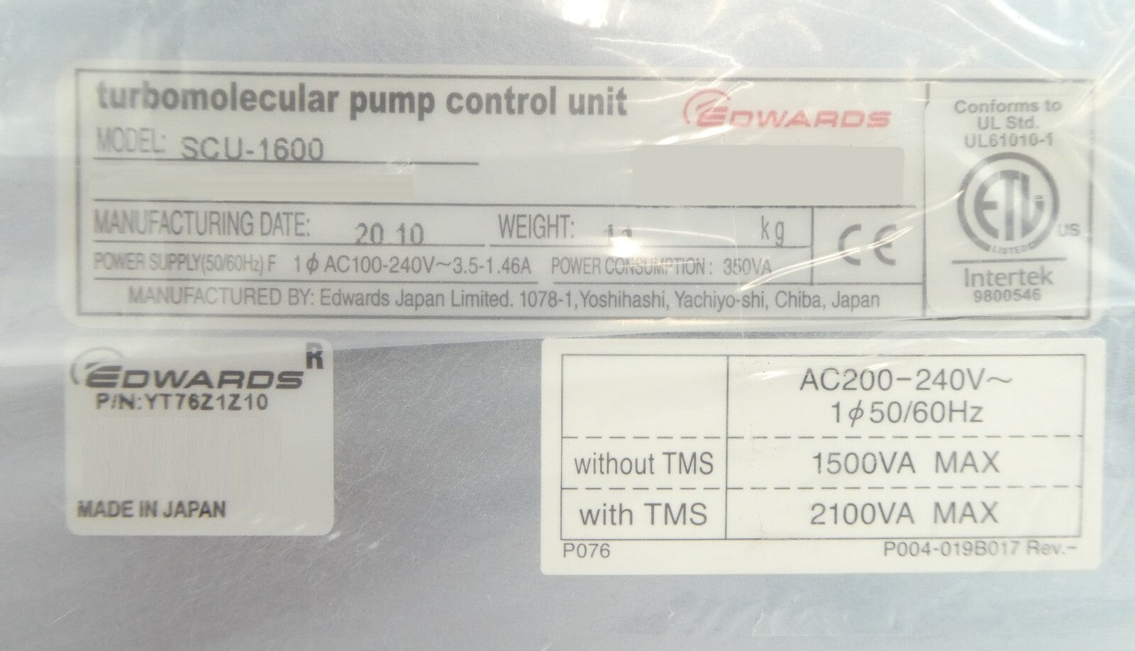 SCU-1600 Edwards YT76-Z1-Z10 Turbomolecular Pump Controller Turbo Refurbished