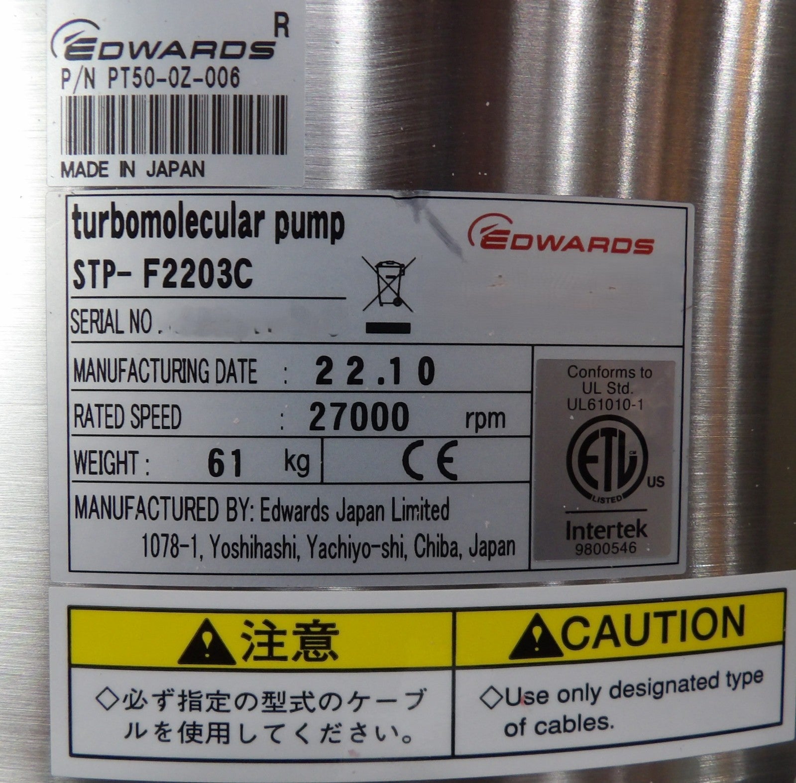STP Edwards PT50-0Z-006 Turbomolecular Pump STP-F2203C Turbo New Untested Spare