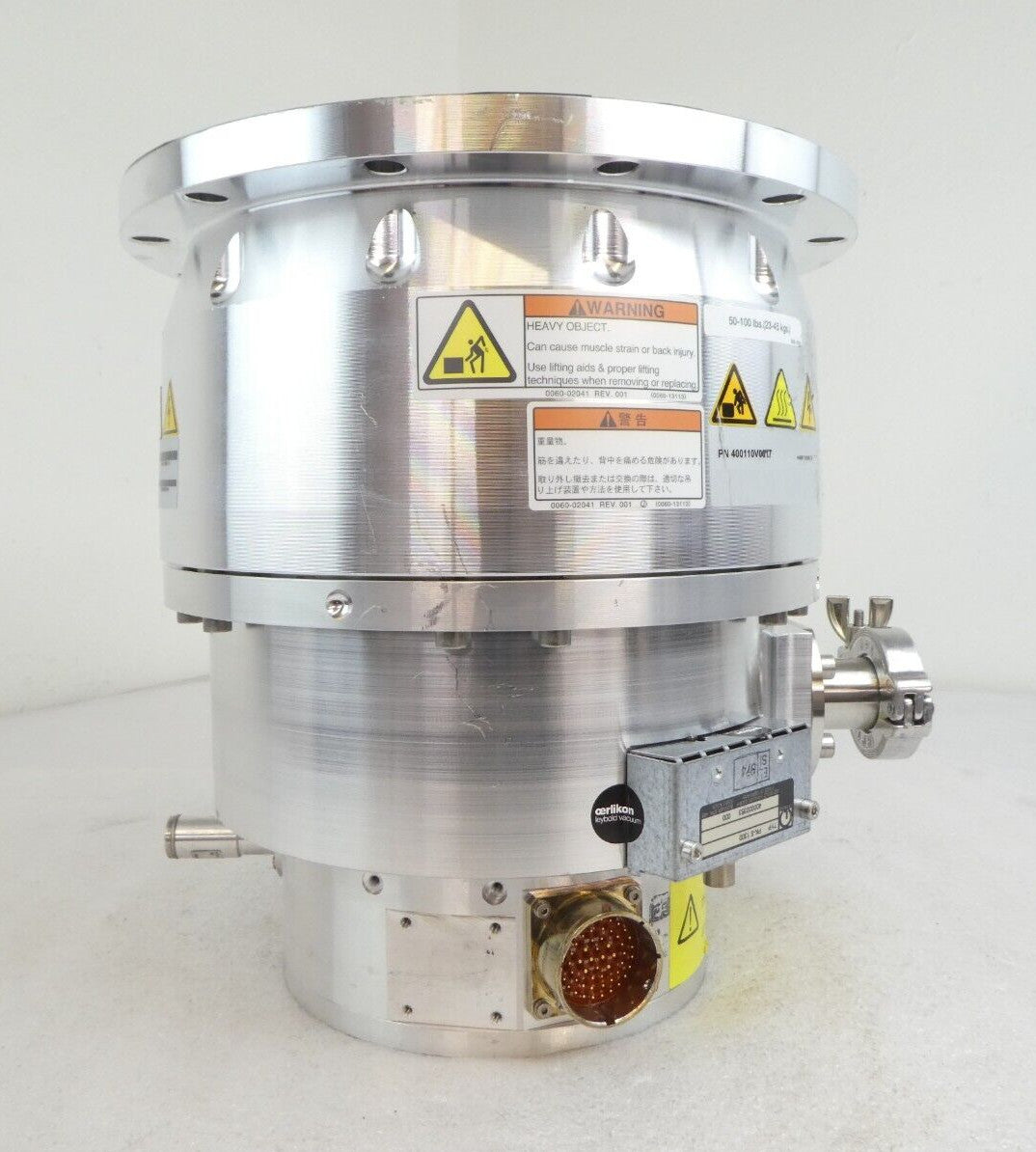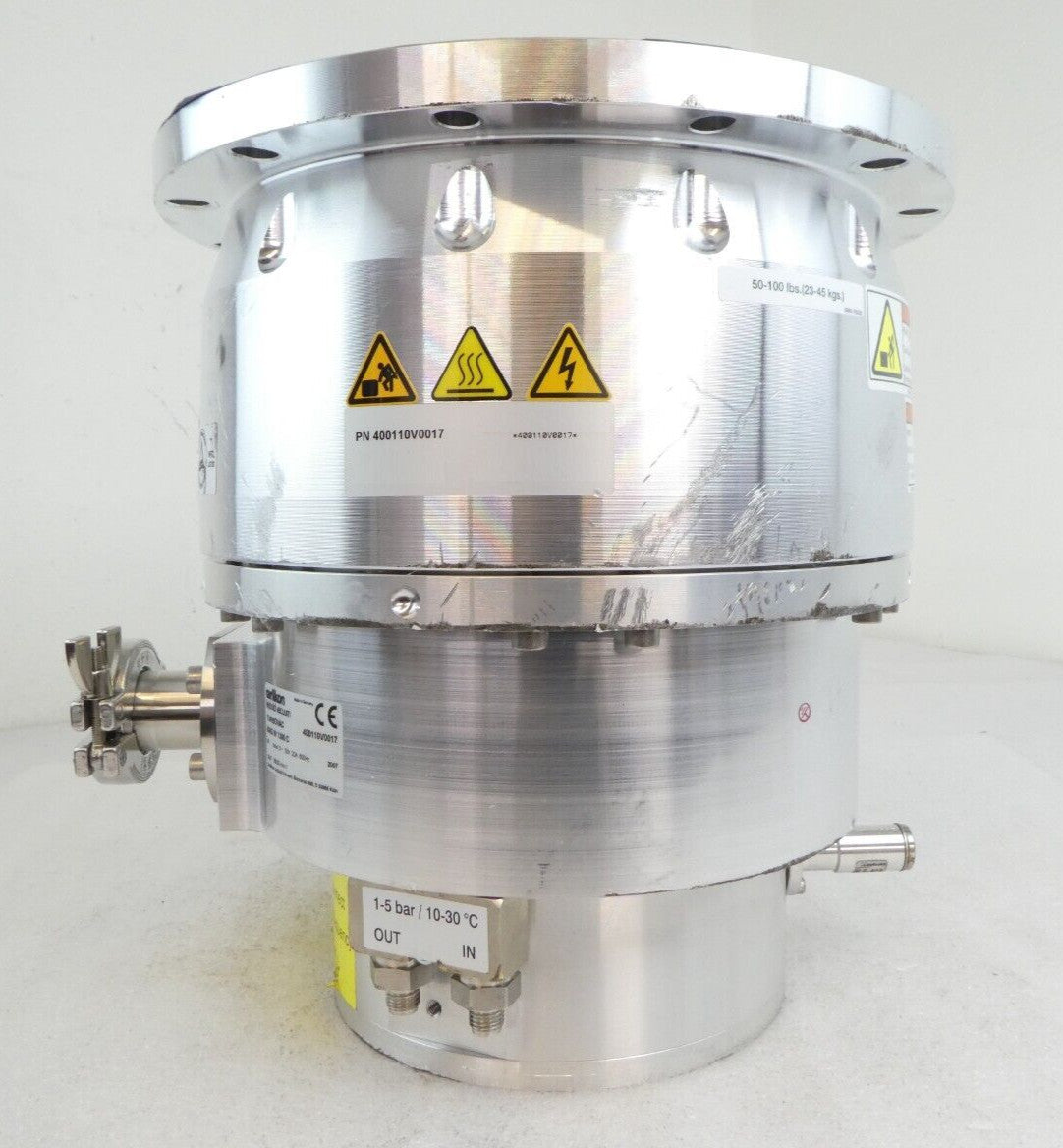 This TURBOVAC MAG W 1300 C Leybold 400110V0017 Turbomolecular Pump is used working surplus. It was tested in our facility and is fully functional. It was tested in our facility and is fully functional. The unit ramped up to full speed and pumped down to 10 mTorr with 27,619 hours of run time. The body has some scuffs from removal and transport (see photos). The physical condition is good, but there are signs of previous use and handling.