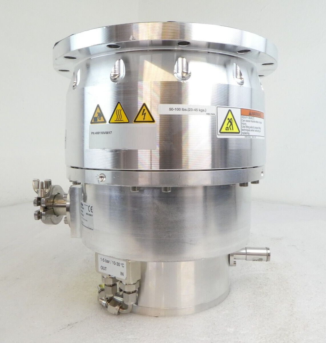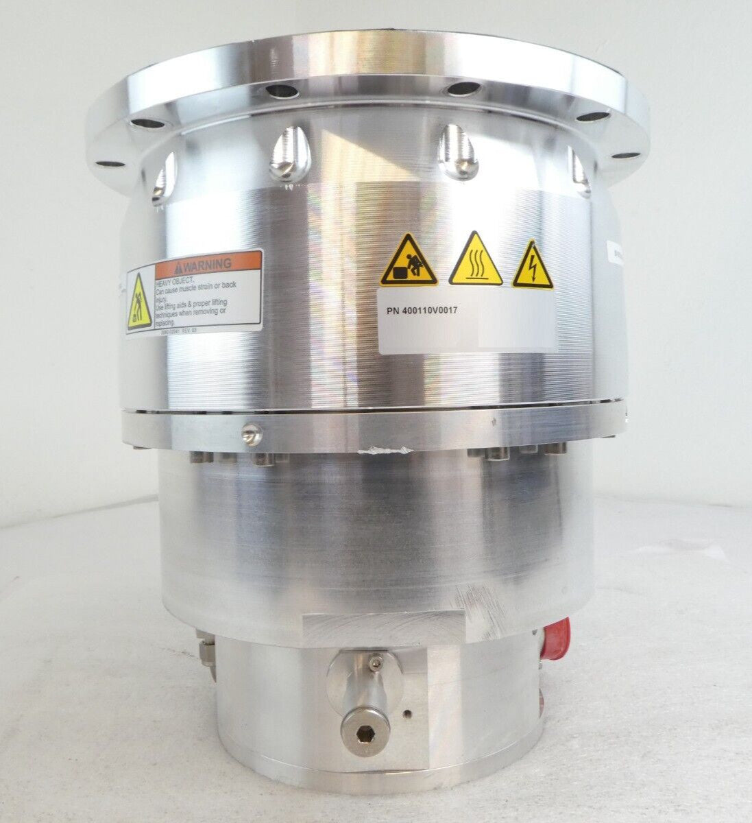This TURBOVAC MAG W 1300 C is used working surplus. It was tested in our facility and is fully functional. The unit ramped up to full speed and pumped down to 10 mTorr.. The physical condition is good, but there are signs of previous use and handling.