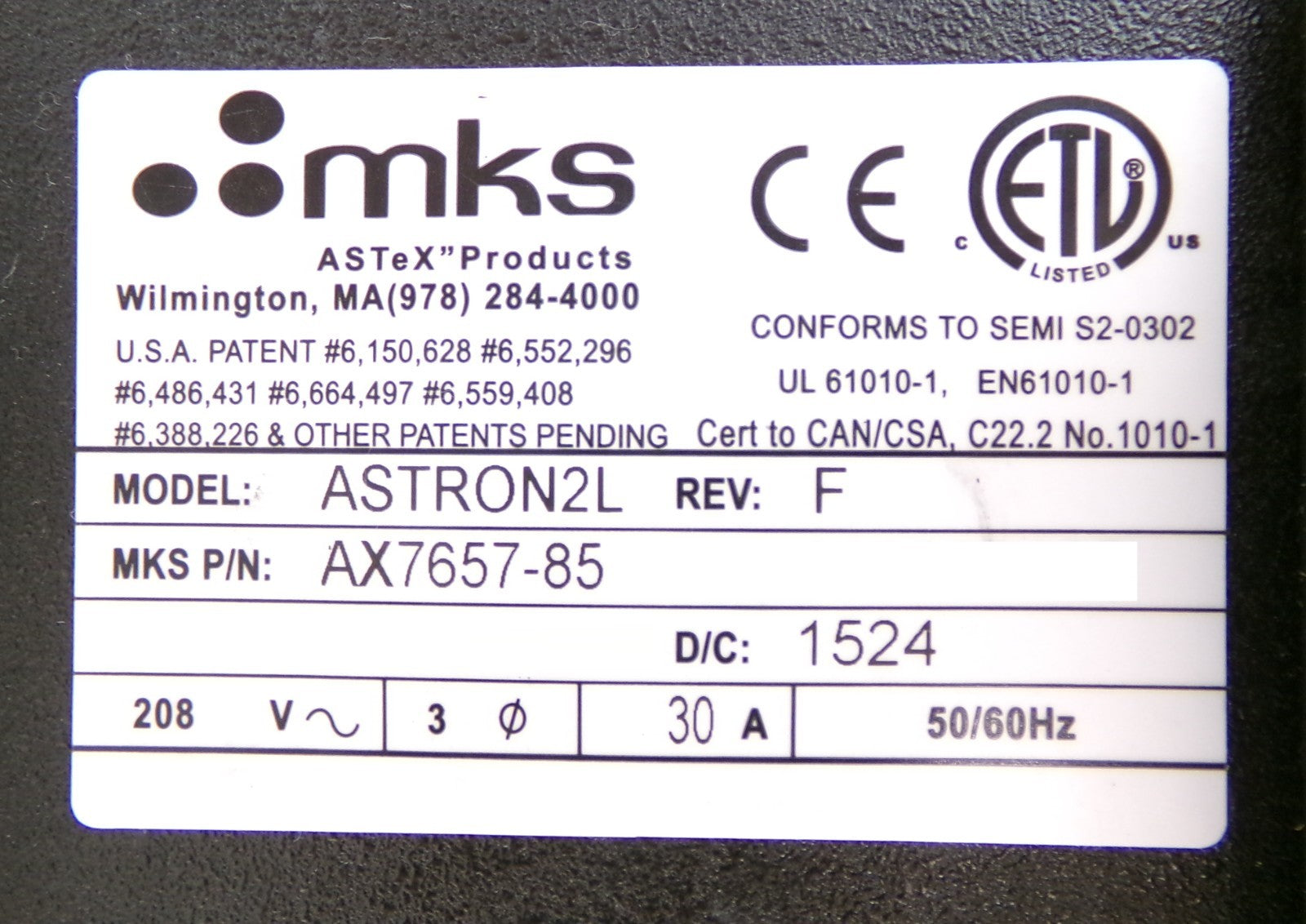 ASTRON 2L MKS Instruments AX7657-85 RPS Remote Plasma Source Untested As-Is