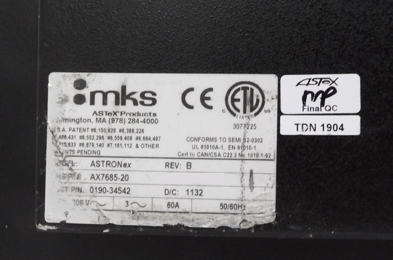 ASTRON ex MKS Instruments AX7685-20 RPS Plasma Source ASTeX 382 Hours Tested