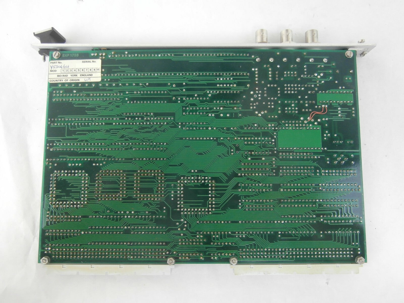 This Bio-Rad Y5304601 Video Controller PCB Card is used working surplus. The physical condition is good, but there are signs of previous use and handling.