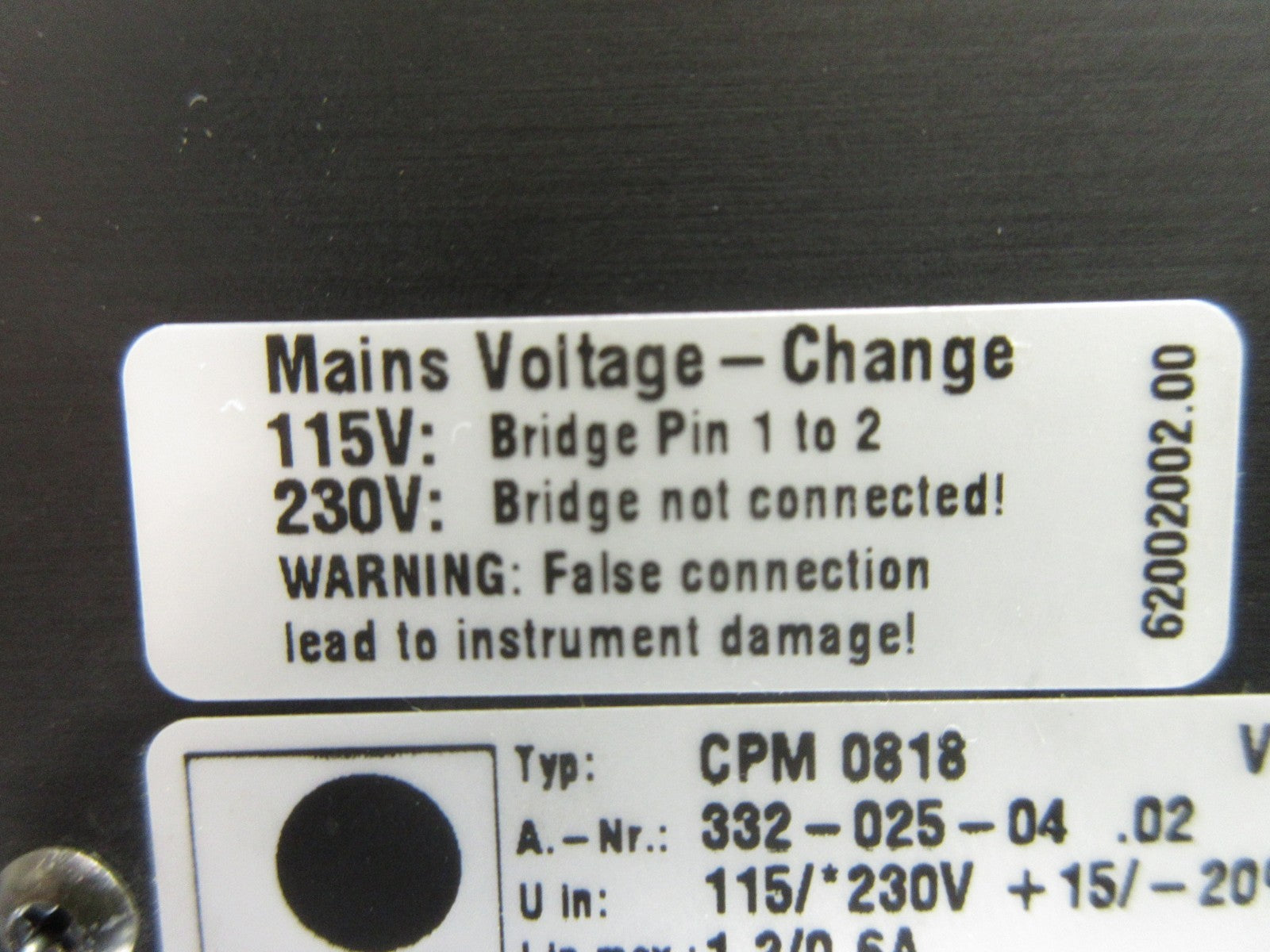• Input: 115/230V +15/-20% 45-440Hz 1.2/0.6A