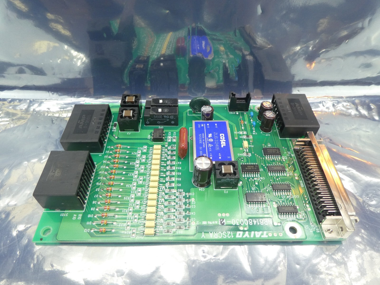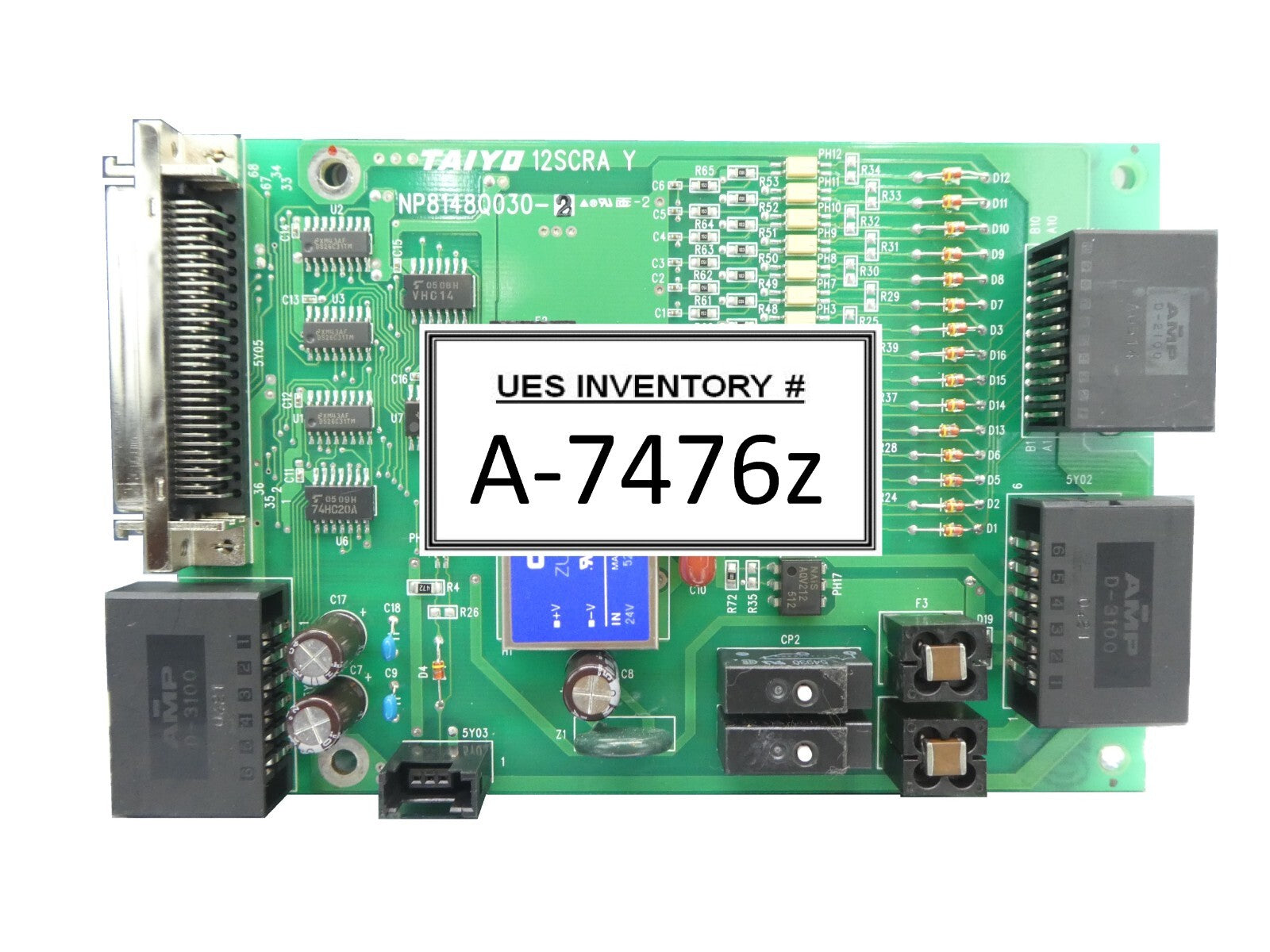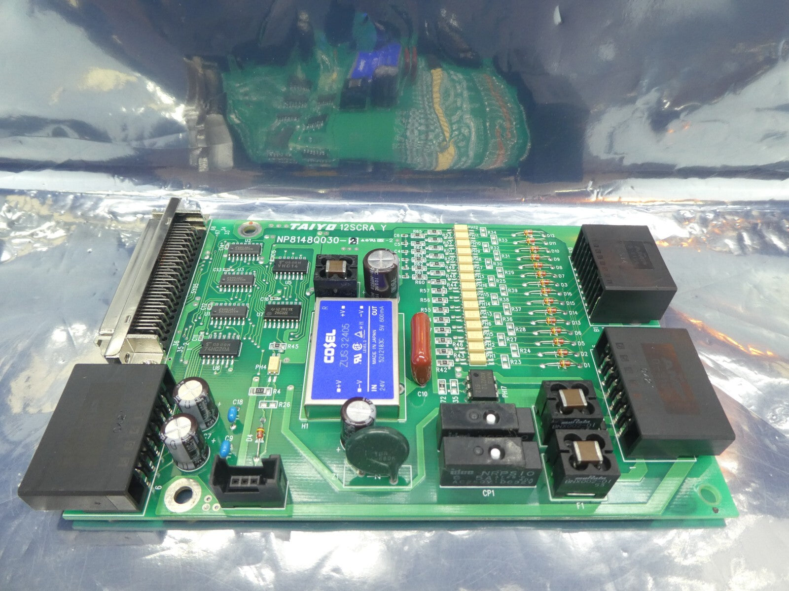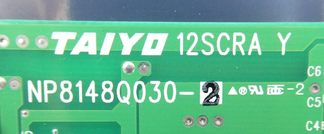 This Taiyo Machinery NP8148Q030-2 PCB is used working surplus. The physical condition is good, but there are signs of previous use and handling.
