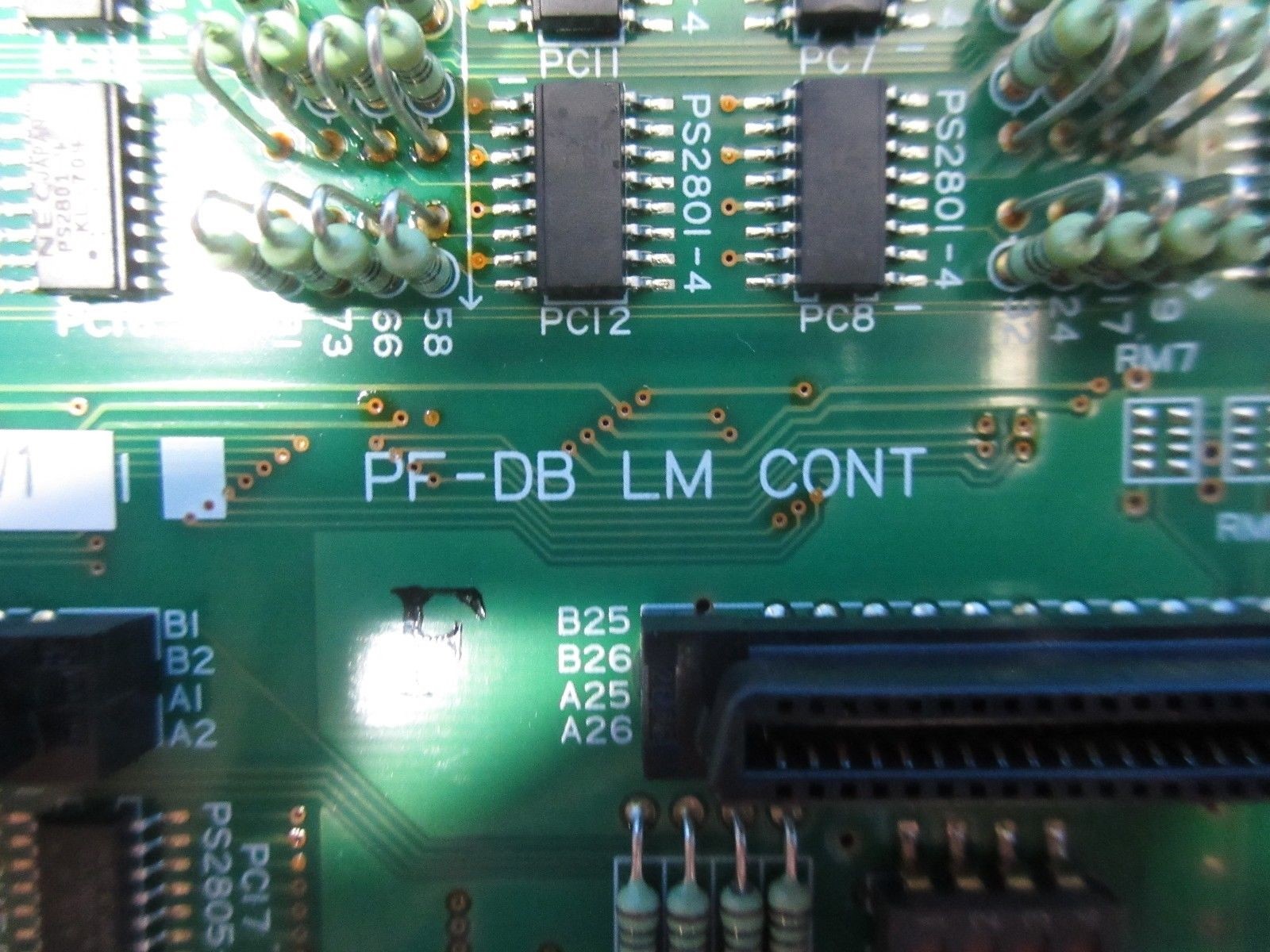 This TEL 3D81-050028-V1 circuit board PF-DB LM CONT is used working surplus.  The physical condition is good, but there are signs of previous use and handling.  This unit was removed from a TEL T-3044SS.