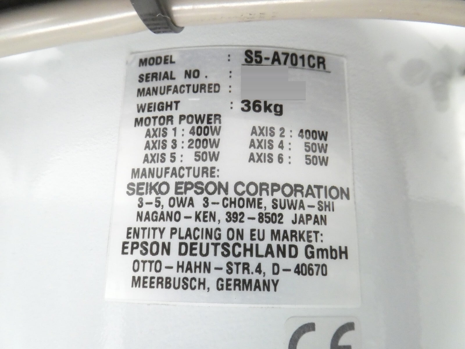 Seiko Epson S5-A701CR Mid Range 6-Axis Industrial Robot S5 Series Surplus
