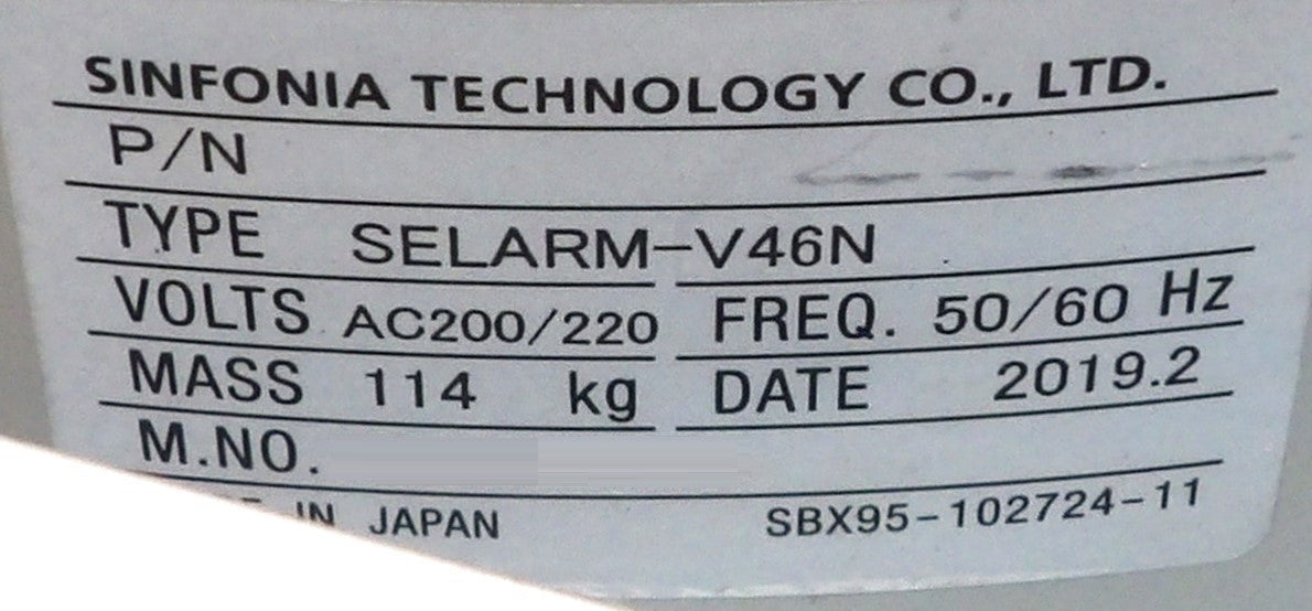 Sinfonia SELARM-V46N Low Vacuum Double Arm Wafer Handling Robot Untested