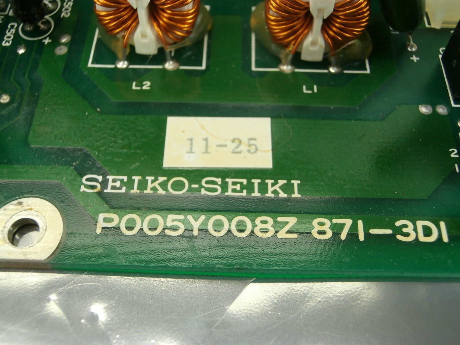 This Seiko Seiki P005Y008Z871-3D1 Capacitor Board PCB SCU-H1000C is used working surplus. The physical condition is good, but there are signs of previous use and handling.