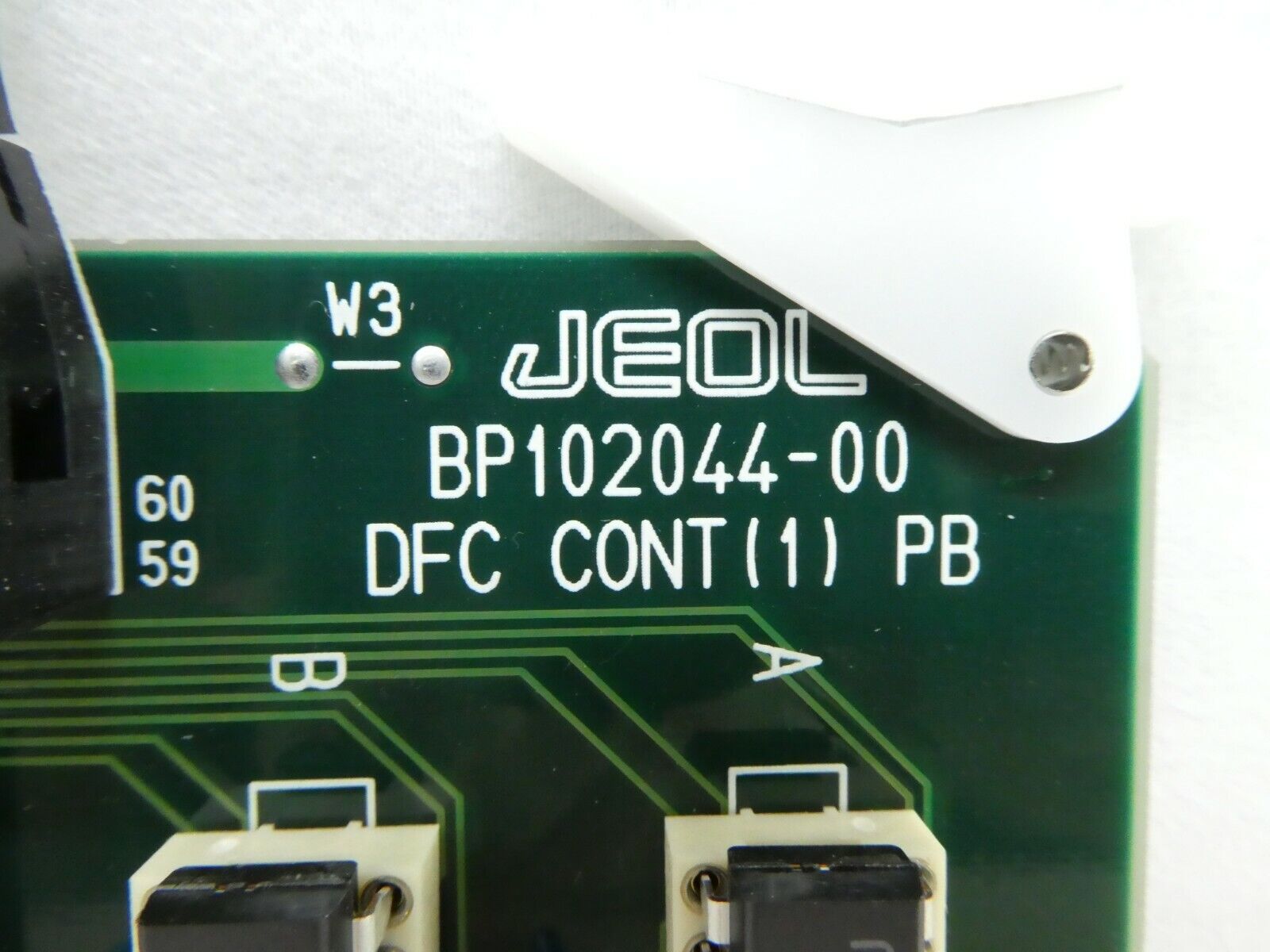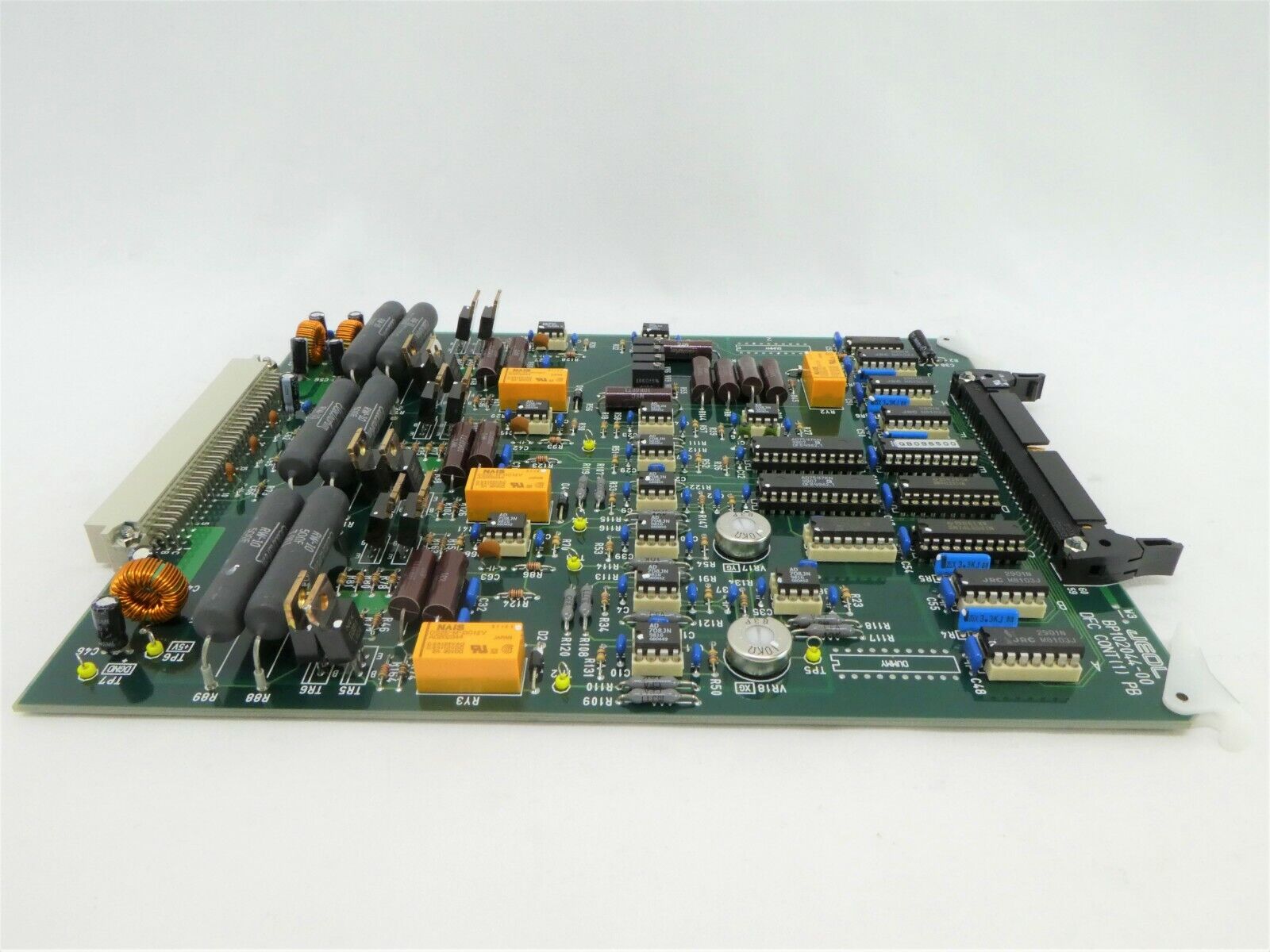 This JEOL BP102044-00 DFC CONT(1) PB PCB Card is used working surplus. The physical condition is good, but there are signs of previous use and handling.