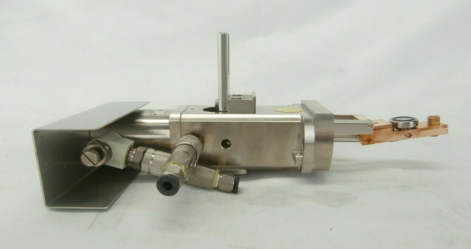 This JEOL Column Pneumatic Sample Gate JWS-7555S Wafer Defect Review SEM Working is used working surplus. Removed from a JEOL JWS-7555S Wafer Defect Review SEM Scanning Electron Microscope System. The physical condition is good, but there are signs of previous use and handling.
