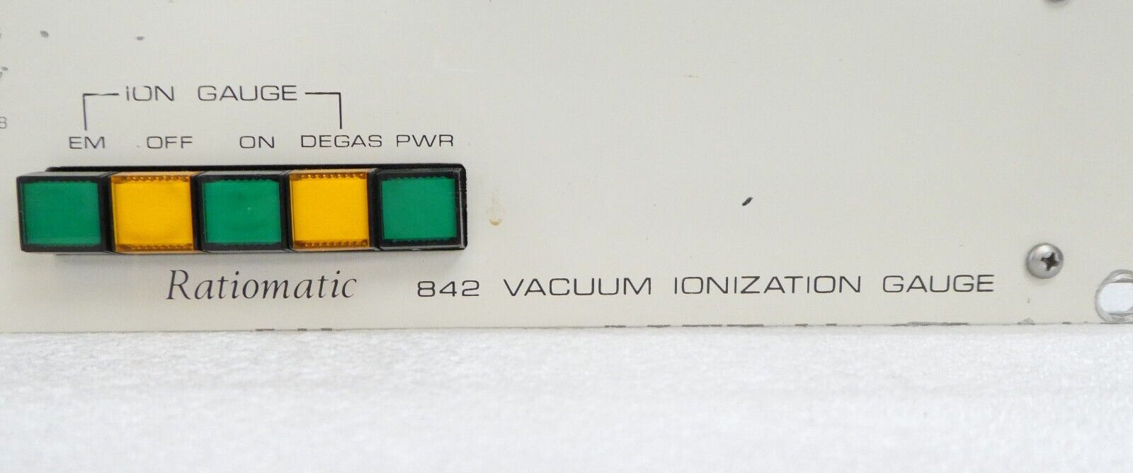 This Varian Semiconductor F6323001 842 Vacuum Ionization Gauge Controller is manufacturer refurbished surplus. The physical condition is good, but there may be signs of previous use and handling.