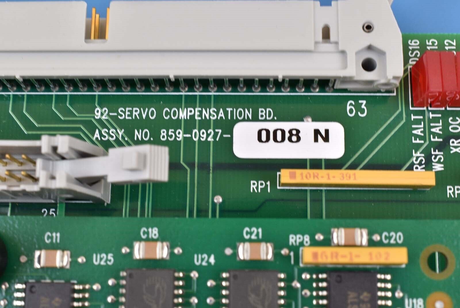 This ASML / SVG 859-0927-008 PCB 92 - Servo Compensation Board Rev.N is used untested surplus and is being sold as-is. The physical condition is fair, but there are signs of previous use and handling.