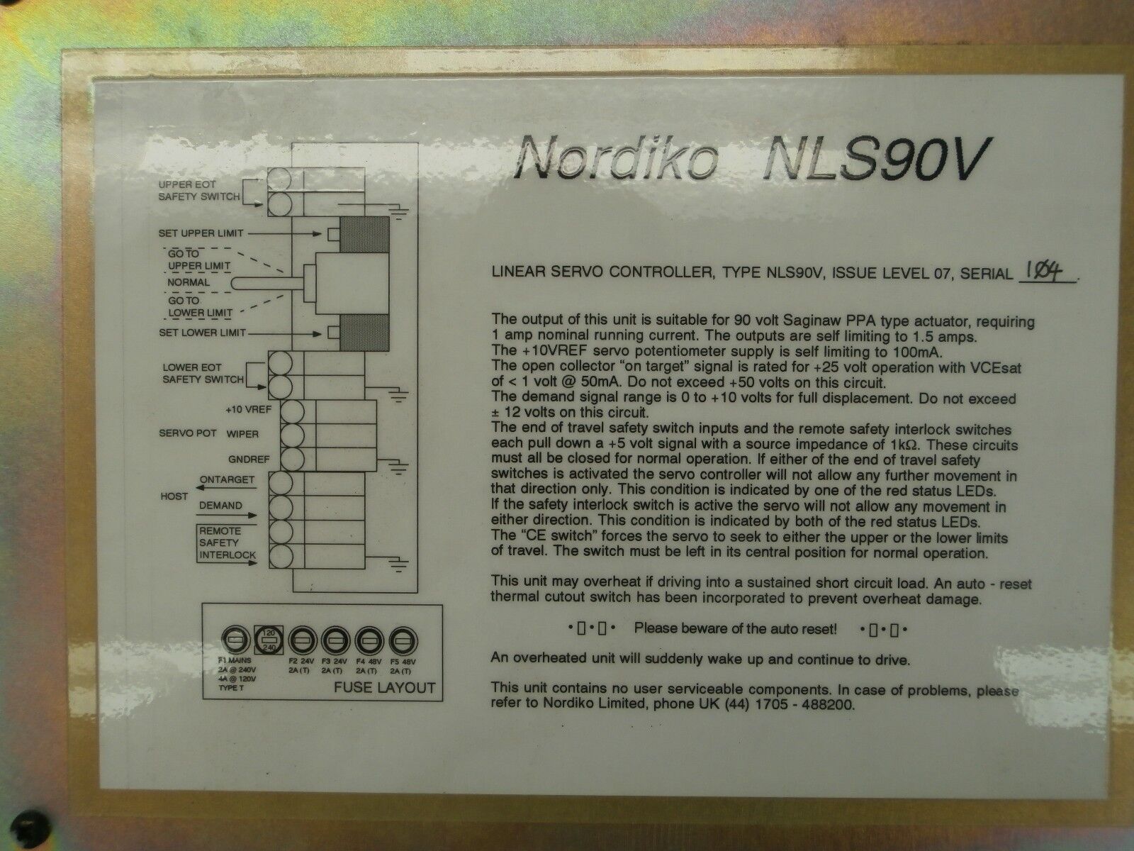 Nordiko NLS90V Linear Servo Controller 9550 Shield Metal Film PVD System Used