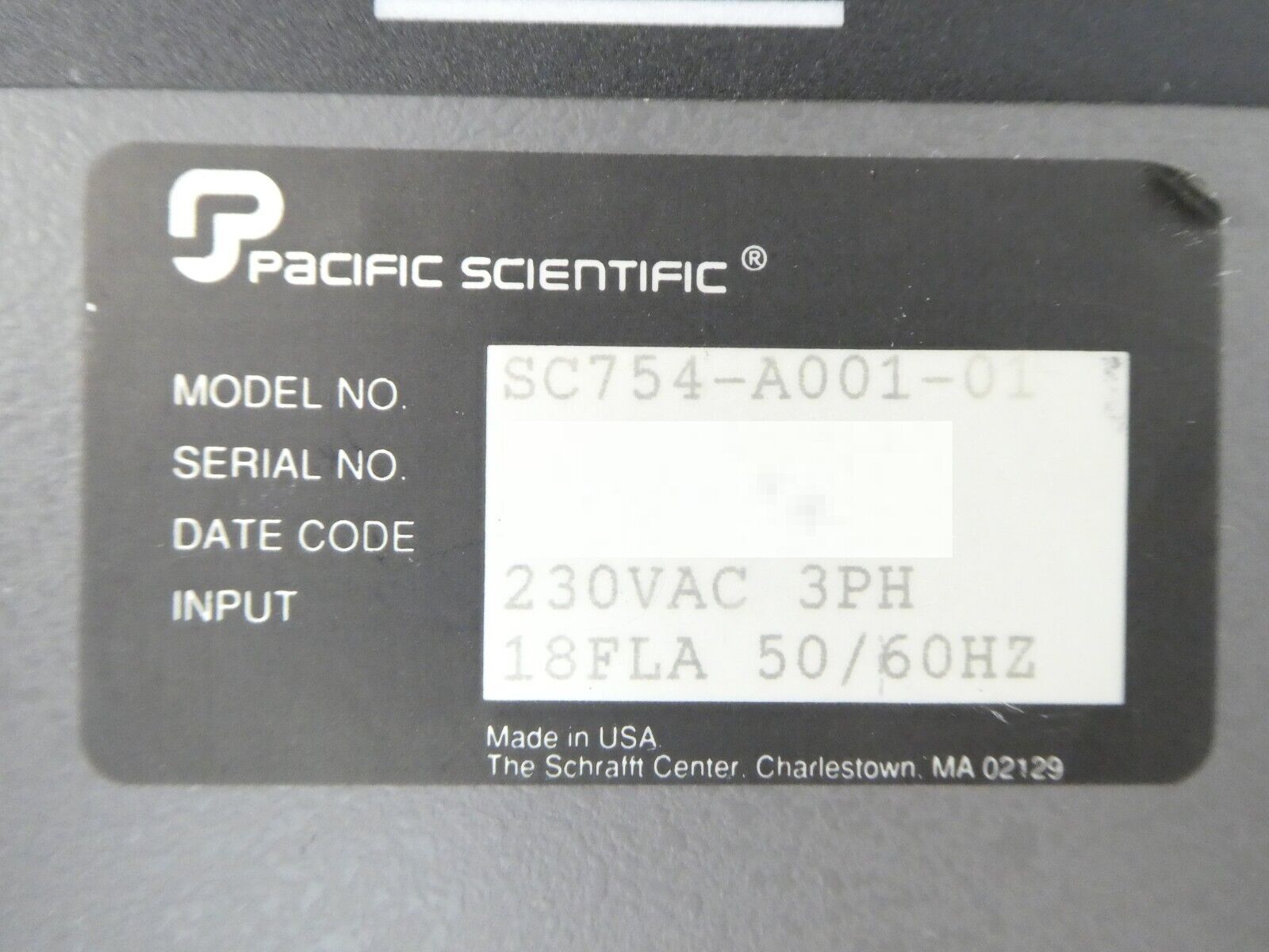 This Pacific Scientific SC754-A001-01 is working surplus. This unit Has bent mounting brackets (see photos). The physical condition is good, but there are signs of previous use and handling.