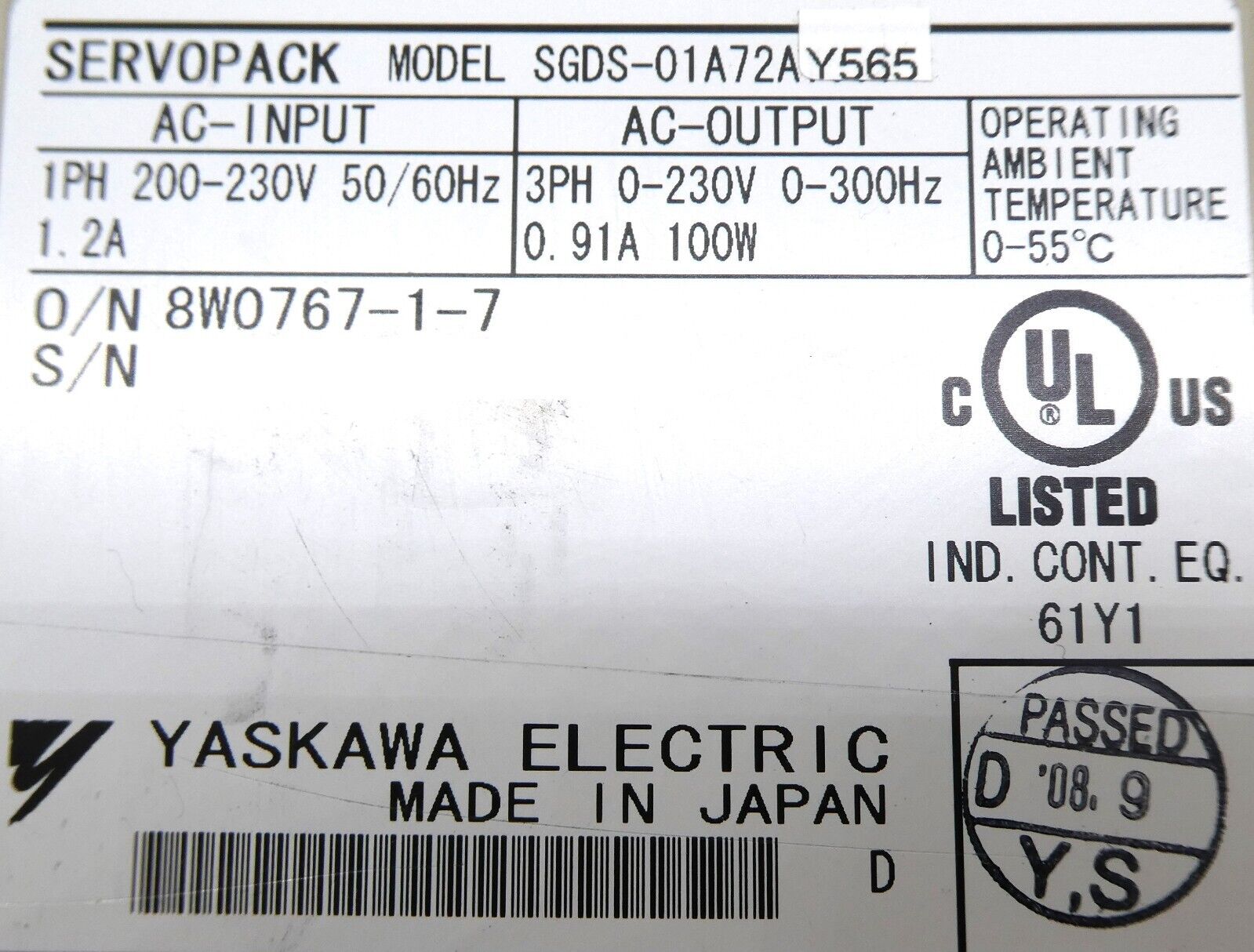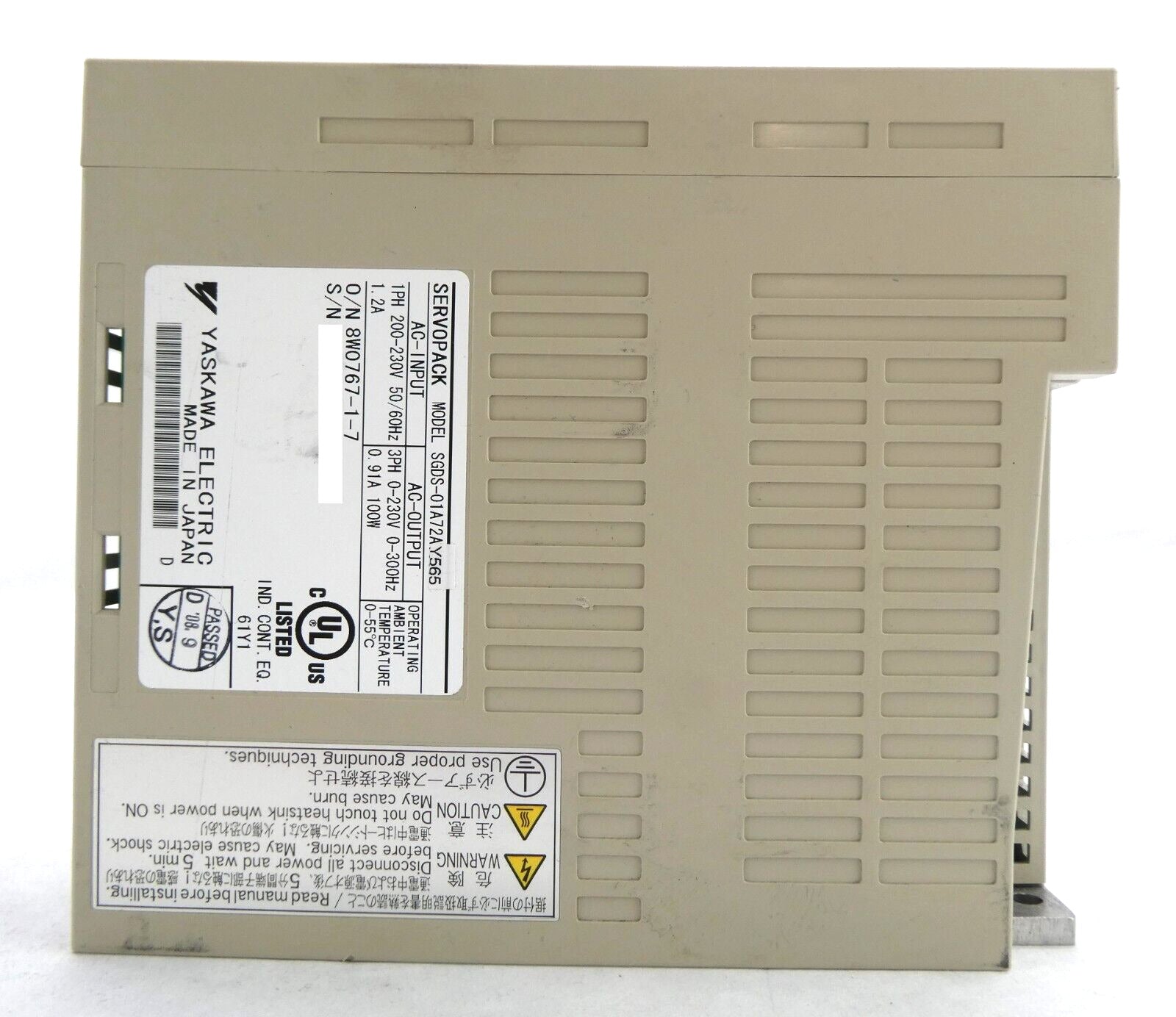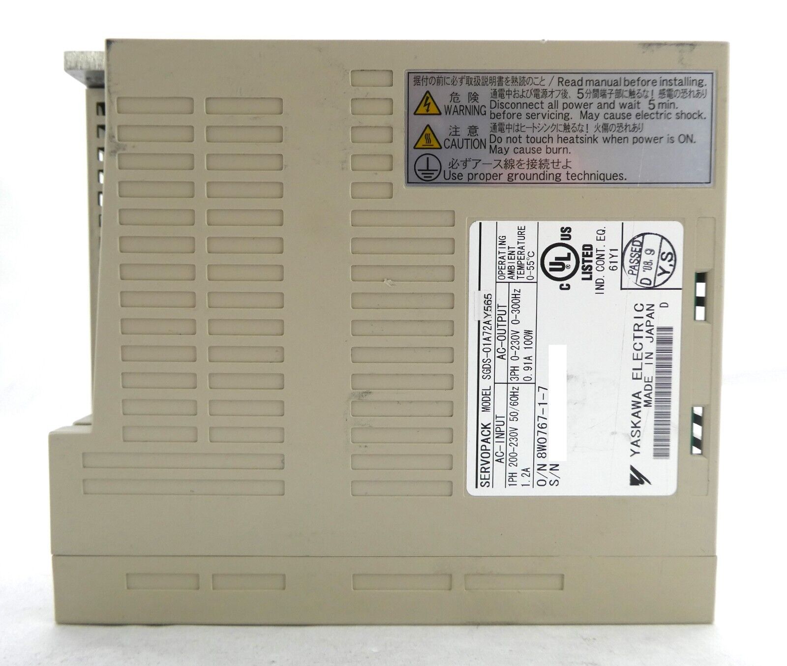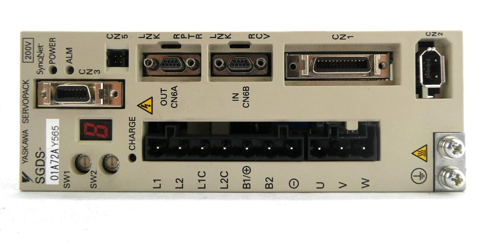 This Yaskawa Electric SGDS-01A72AY565 Servo Drive SERVOPACK is used working surplus. The physical condition is good, but there are signs of previous use and handling.