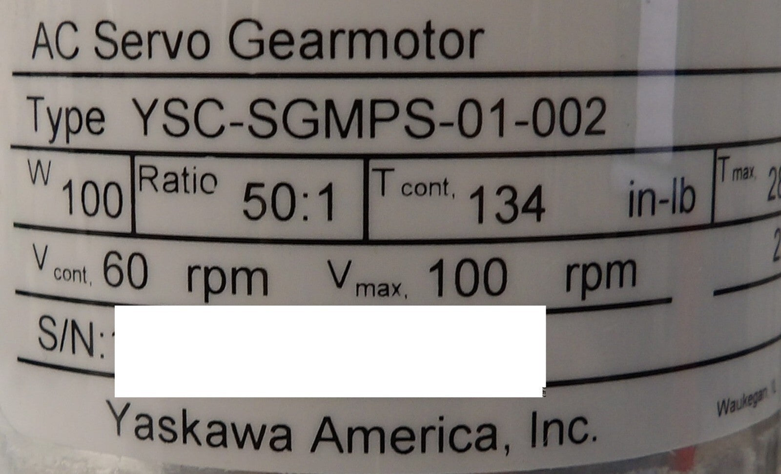• AC Servo Gearmotor Part No: YSC-SGMPS-01-002