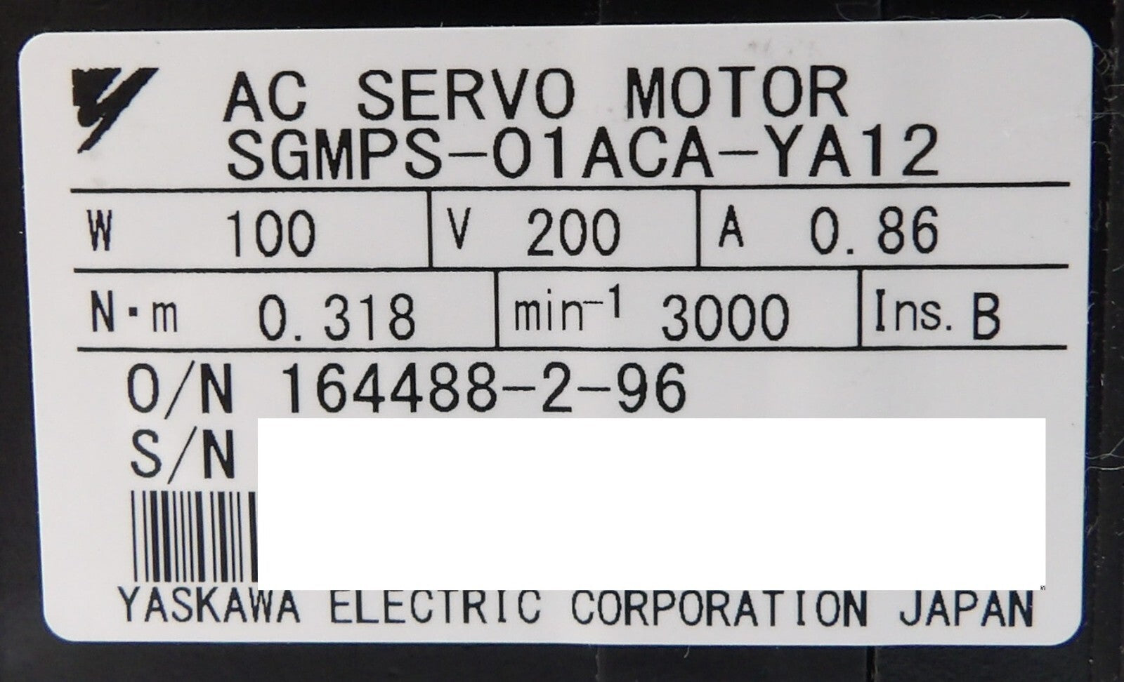 Yaskawa Electric SGMPS-01ACA-YA12 AC Servo Motor with YSC-SGMPS-01-002 New