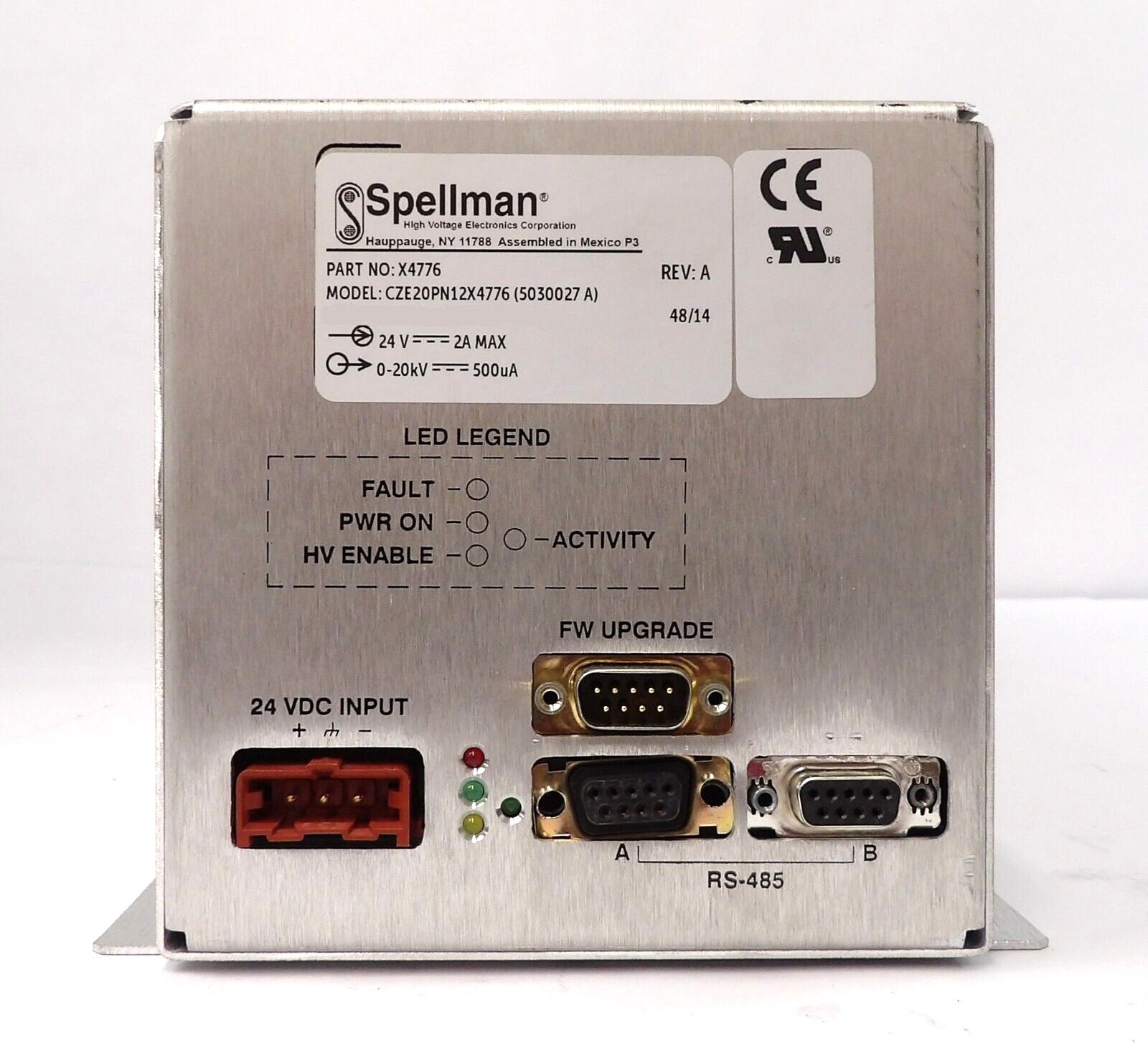 This Spellman X4776 is untested surplus and is being sold as-is. This unit has a damaged connector (see photos). The physical condition is fair, but there are signs of previous use and handling.