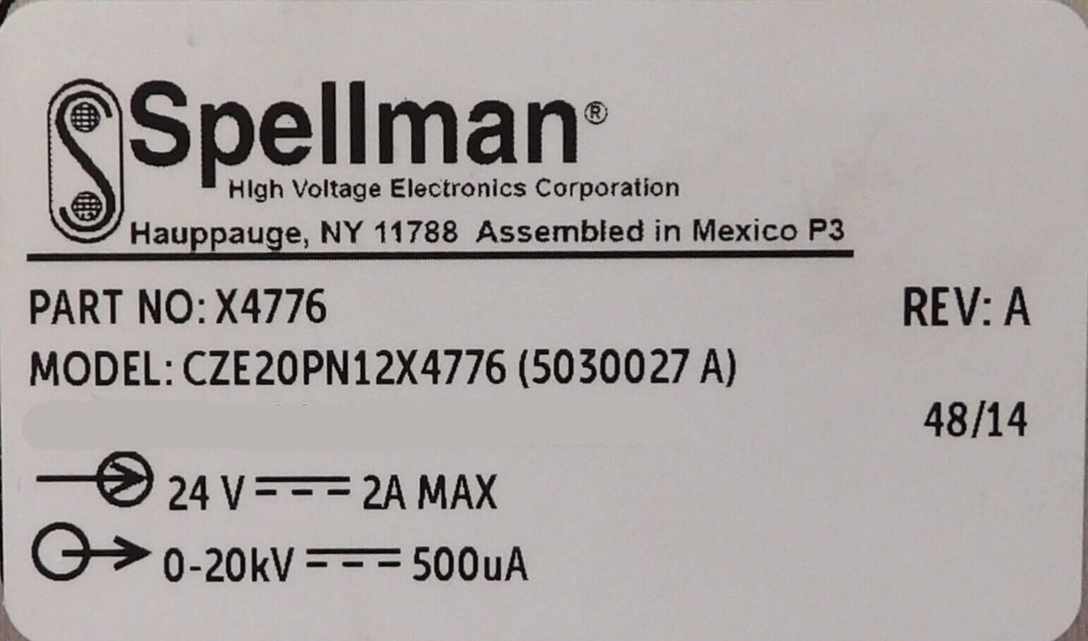 Spellman X4776 High Voltage Power Supply CZE20PN12X4776 AB Sciex TripleTOF 6600