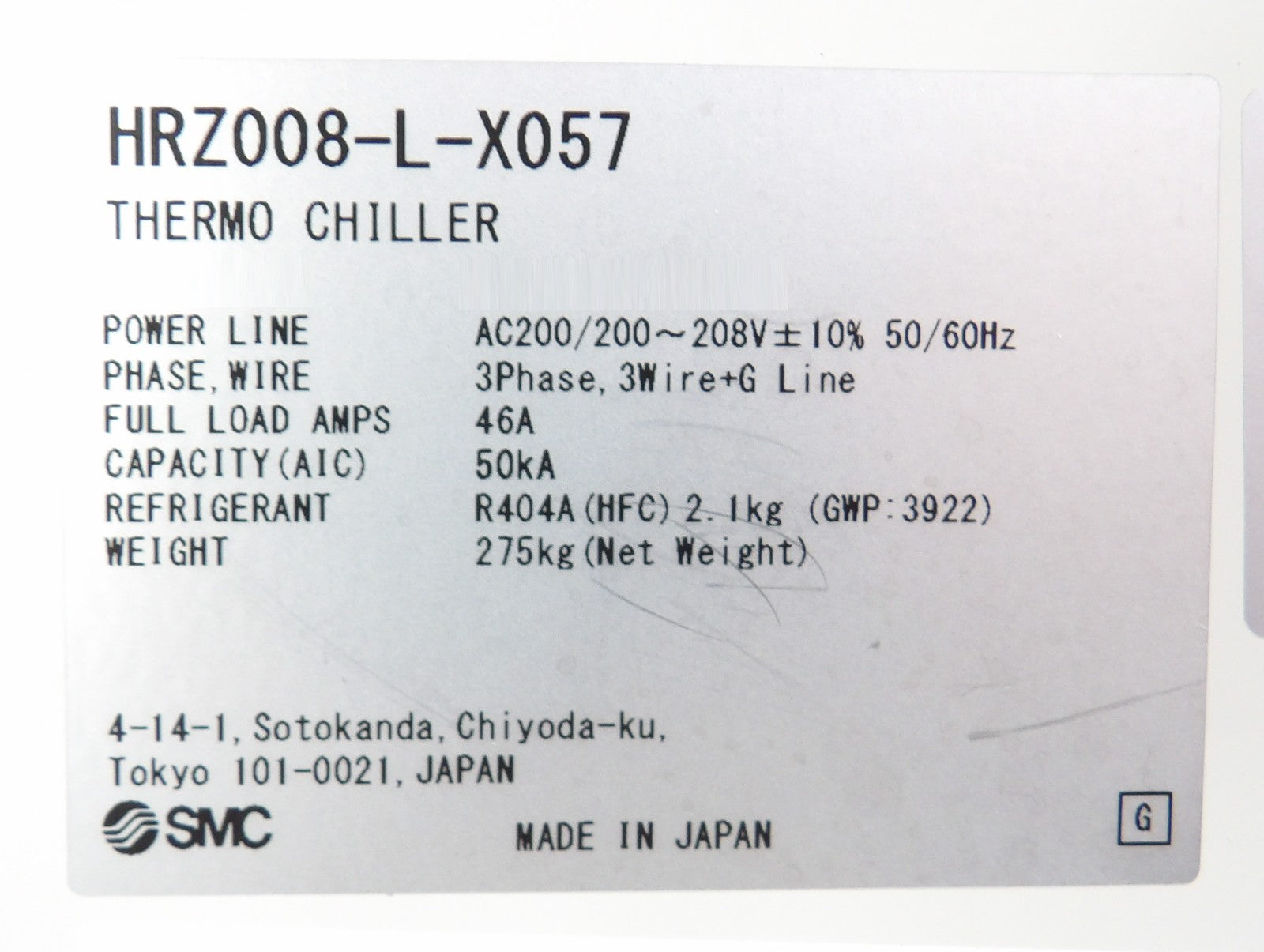 SMC Pneumatics HRZ008-L-X057 Recirculating Thermo Chiller FC-3283 Refurbished