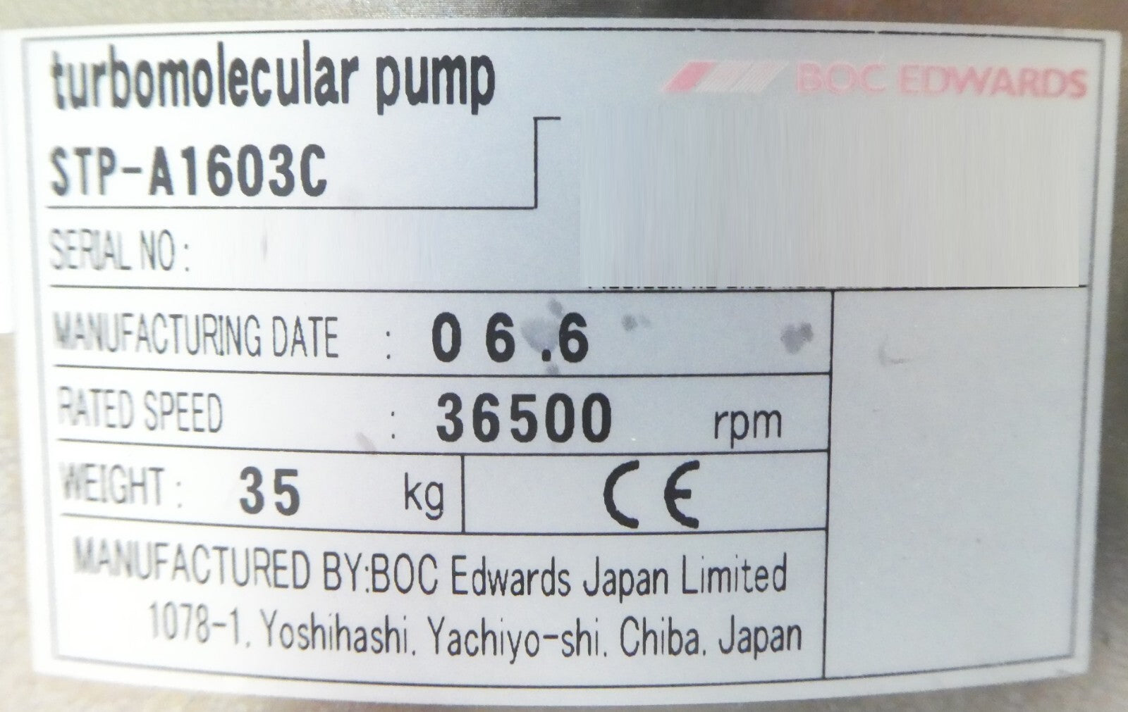 STP-A1603C Edwards B751-00-050 Turbomolecular Pump STP High Hours Tested Working
