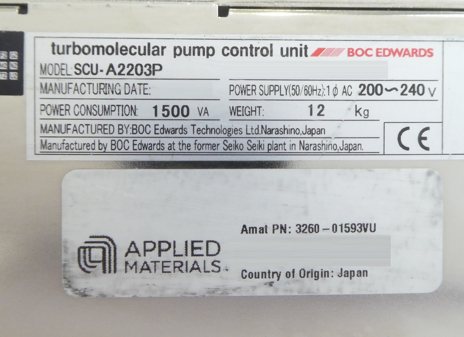This Edwards SCU-A2203P is working surplus. The physical condition is good, but there are signs of previous use and handling.
