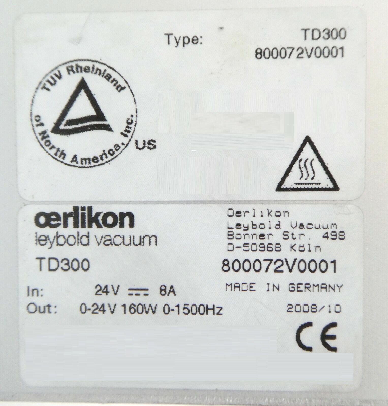 TD300 Leybold 800072V0001 Turbomolecular Pump Controller TURBO.DRIVE 300 Working