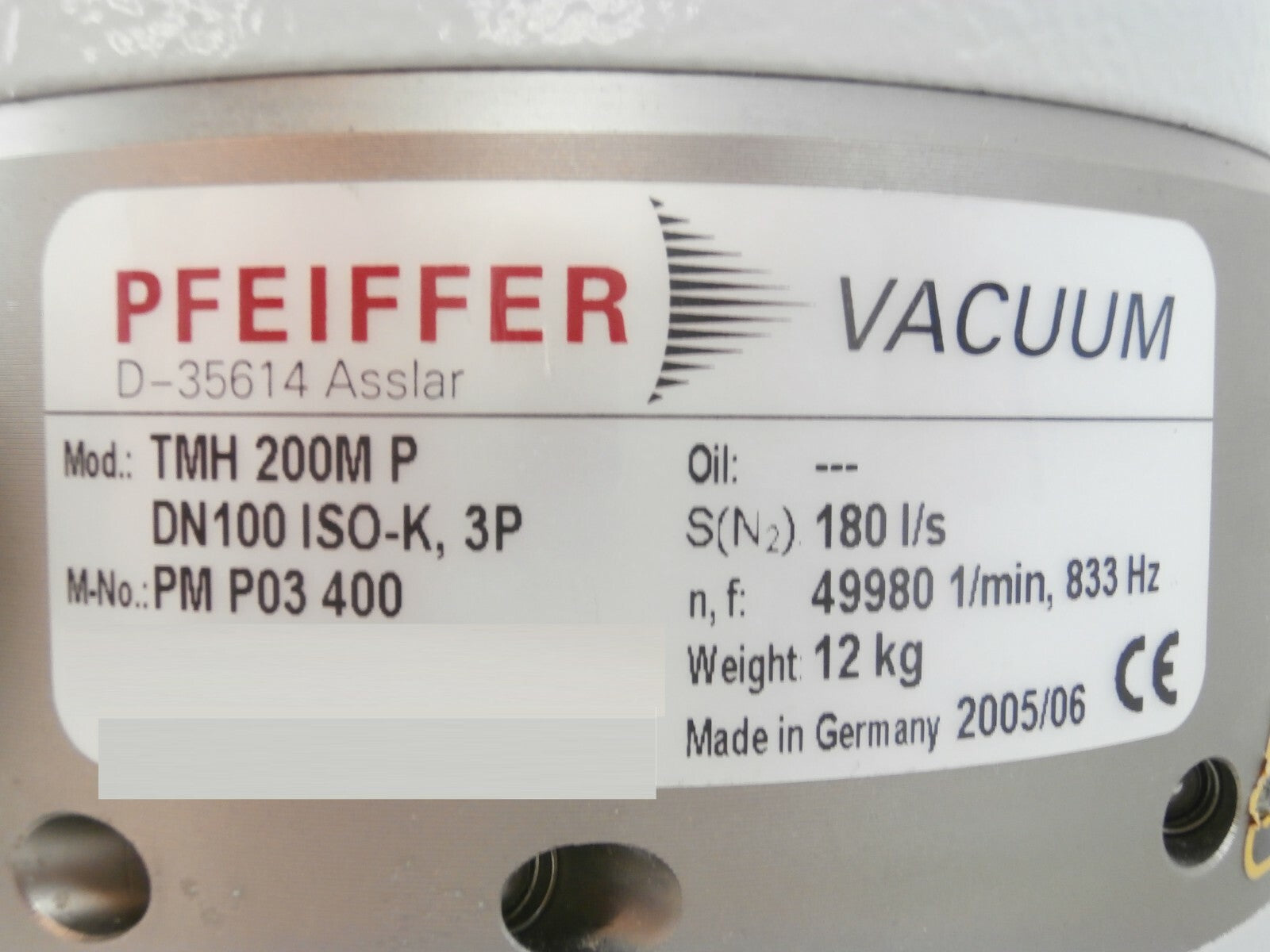 TMH 200M P Pfeiffer Vacuum PM P03 400 Turbomolecular Pump Turbo Working Surplus