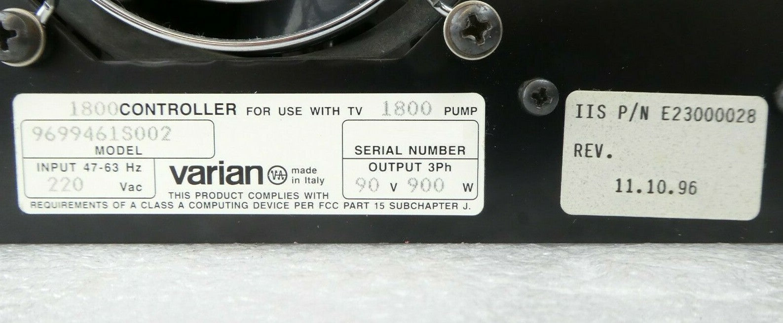 TV-1800 Varian 9699461S002 Turbo Pump Controller Turbo-V E23000028 Refurbished