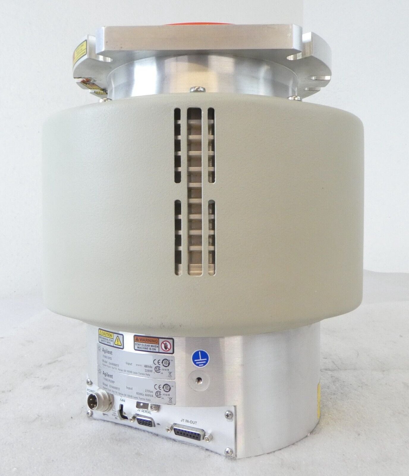 This TV903 Agilent EX9698812 Turbomolecular Pump is used untested surplus and is being sold as-is. This unit could not be tested in our facility. The blades spin freely, This unit has a dent on the bottom of the built in controller/power supply (see photos). The physical condition is good and there are visible signs of previous use and handling.