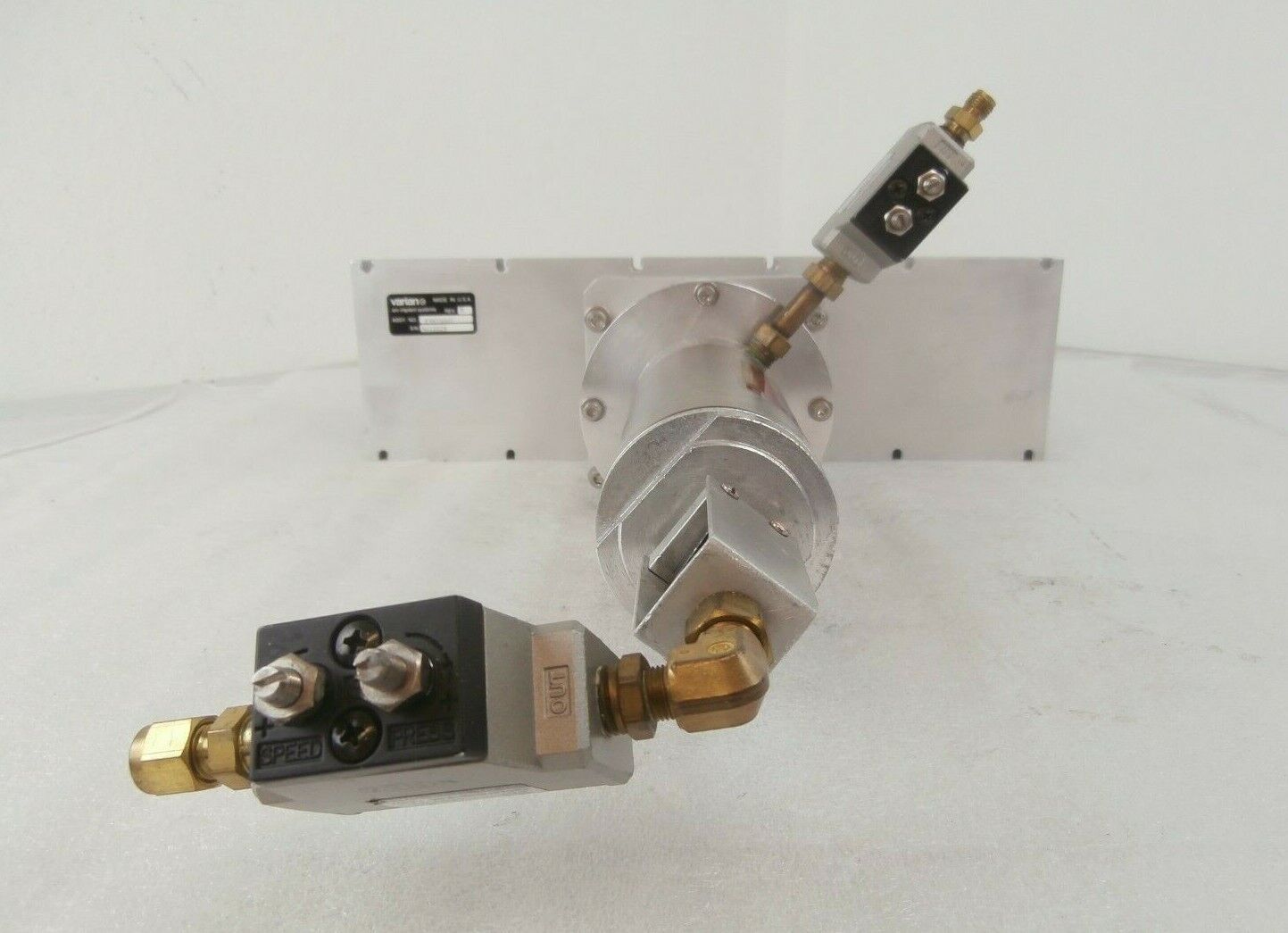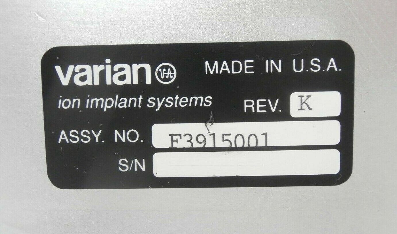 This Varian Semiconductor VSEA F3915001 Isolation Valve Assembly is used working surplus. The physical condition is good, but there are signs of previous use and handling.
