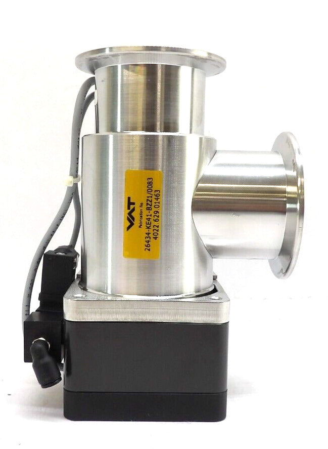 This VAT 26434-KE41-BZZ1 Pneumatic HV Angle Valve is used working surplus. The physical condition is good, but there are signs of previous use and handling.