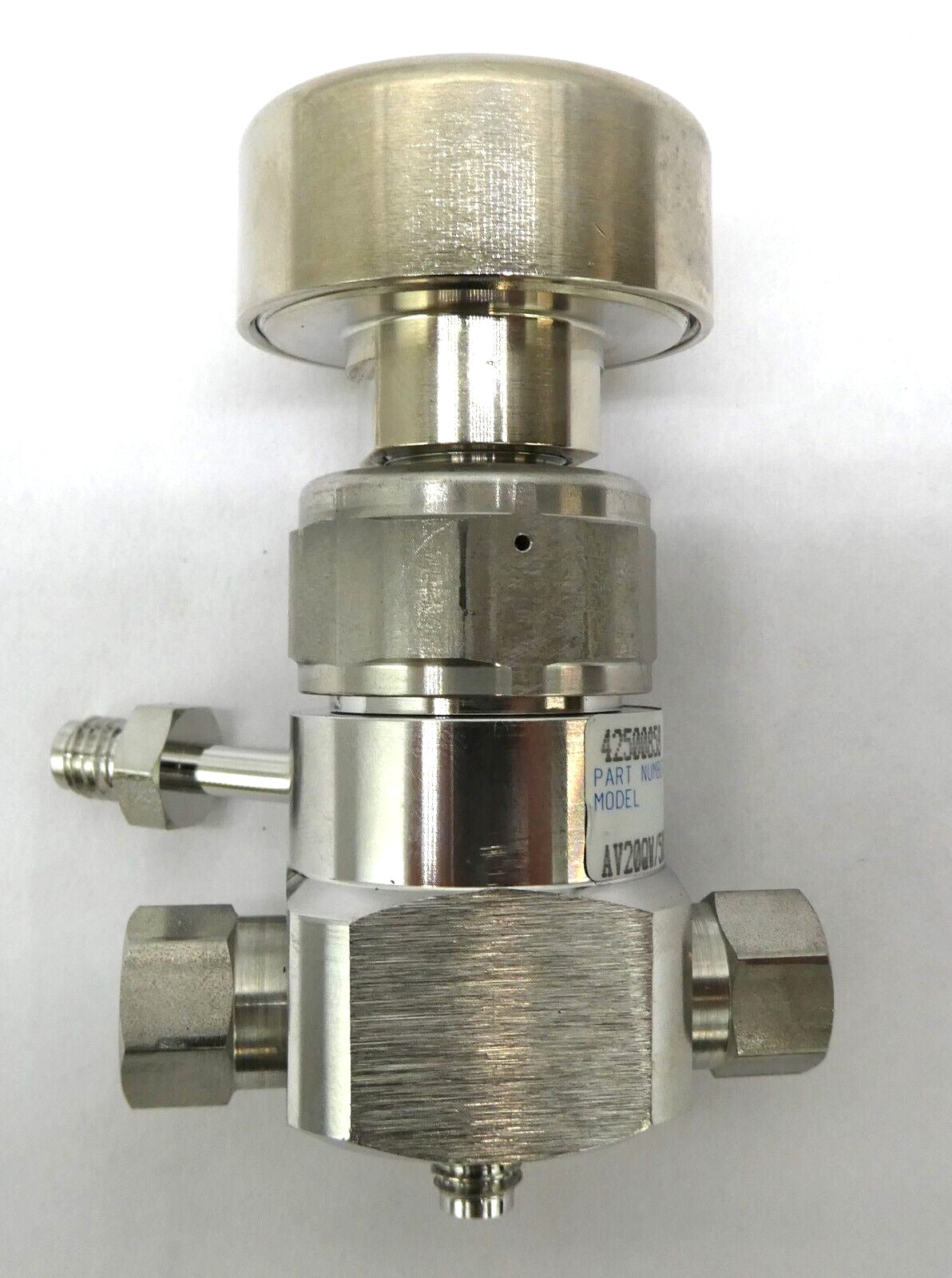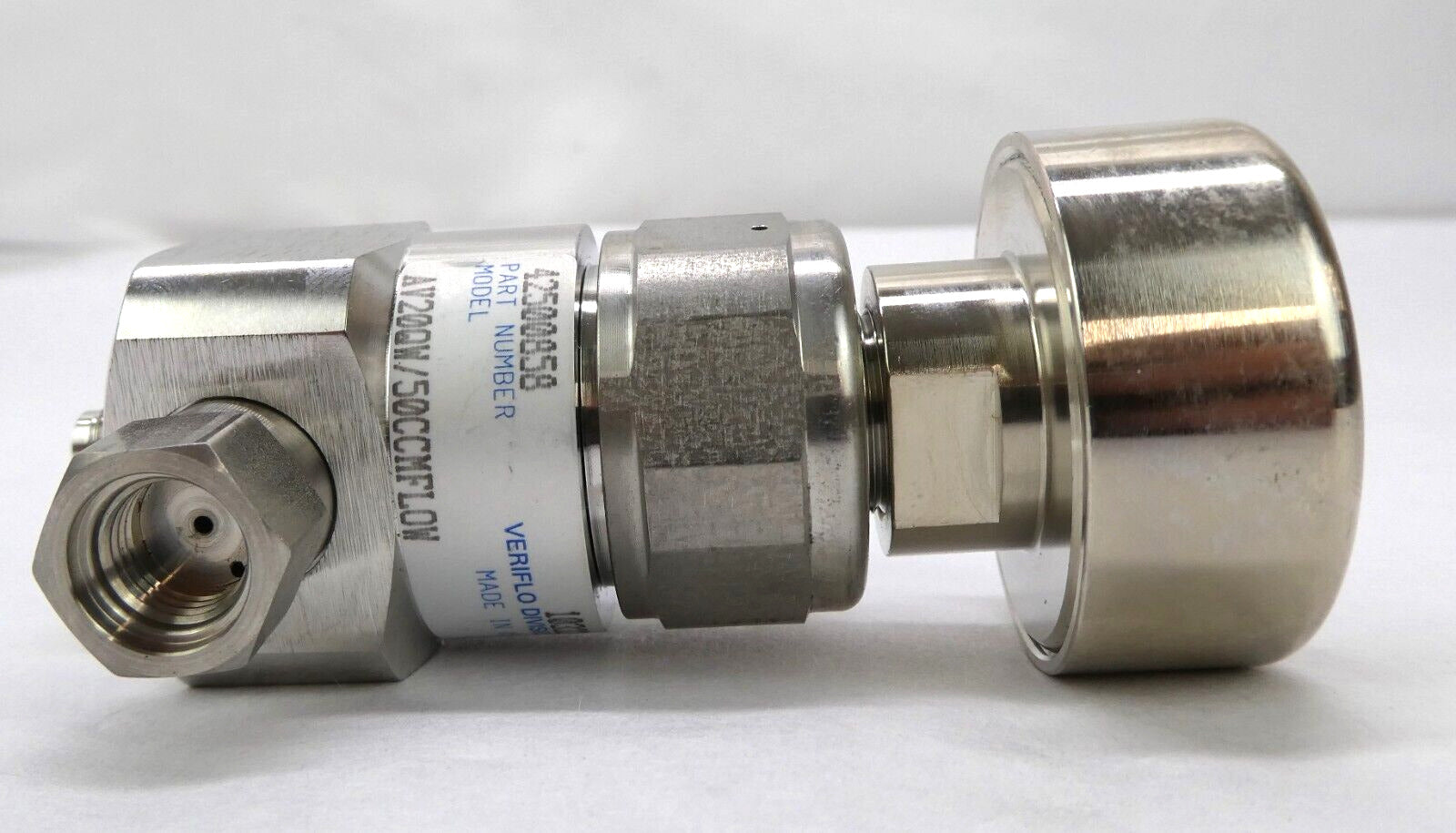 This Veriflo Corporation AV20 Bellows Valve is used working surplus. The physical condition is good, but there are signs of previous use and handling.