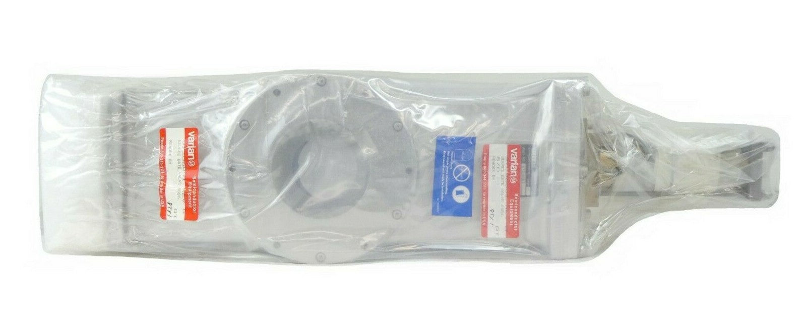 This Varian Vacuum Technologies 07306001 X Source Gate Valve Assembly is manufacturer refurbished surplus. The physical condition is good, but there may be signs of previous use and handling.