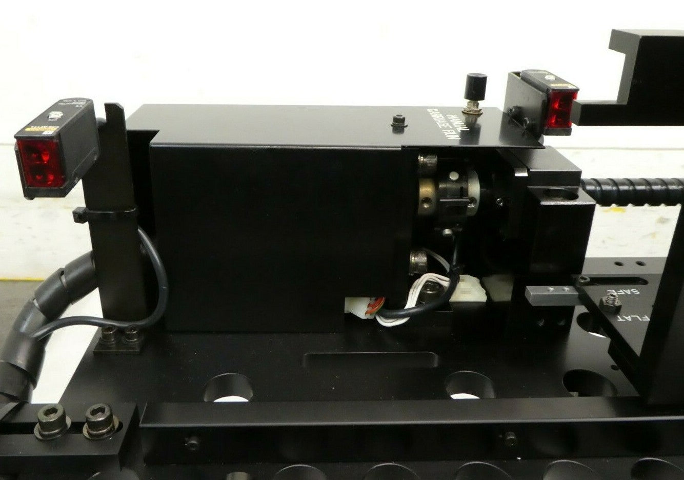 This Varian VSEA V87-305354 Wafer Handler Carriage Assembly is used working surplus. The physical condition is good, but there are signs of previous use and handling.
