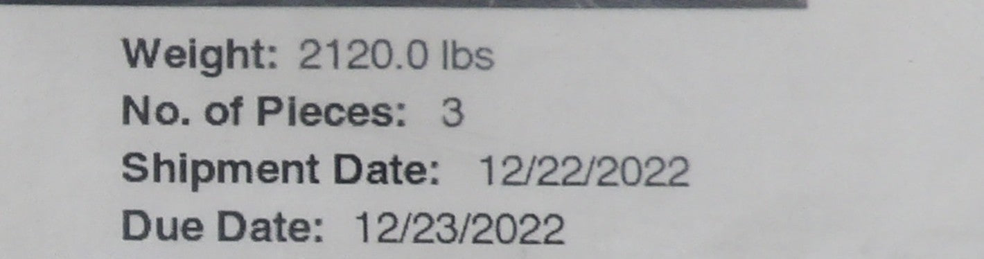 • Freight shipments are commercial Dock to Dock deliveries; residential addresses are curbside service only, buyer is responsible for moving the product from the truck lift gate to their home.