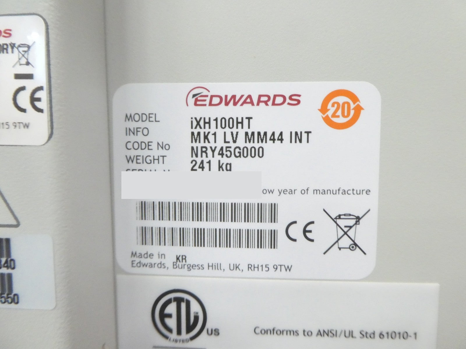 iXH 100HT Edwards NRY45G000 Vacuum Pump IXH100 Manufacturer Refurbished