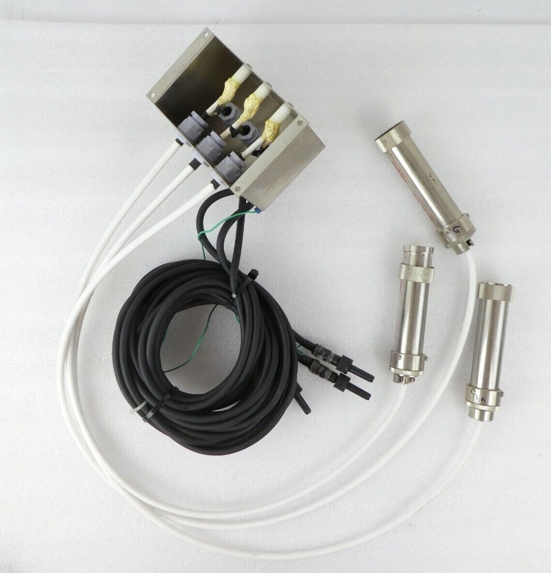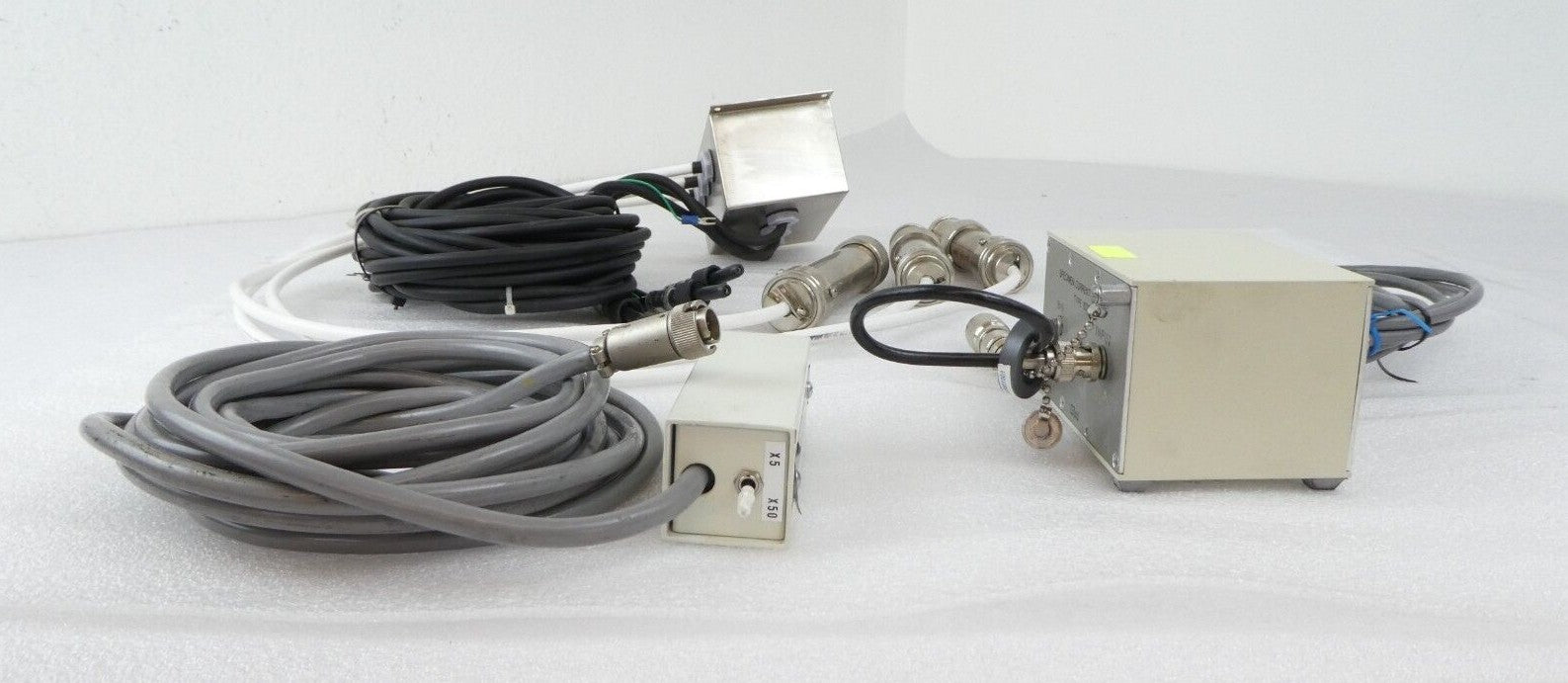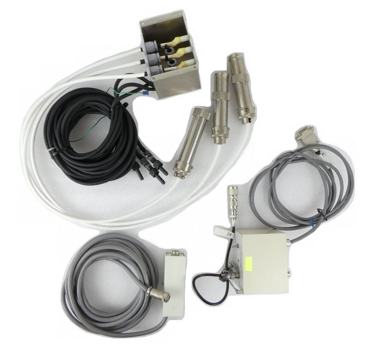This JEOL JSM-6400F Column Gun Assembly HV Cable and Amplifier Set of 3 is used working surplus. The physical condition is good, but there are signs of previous use and handling. Sale Details