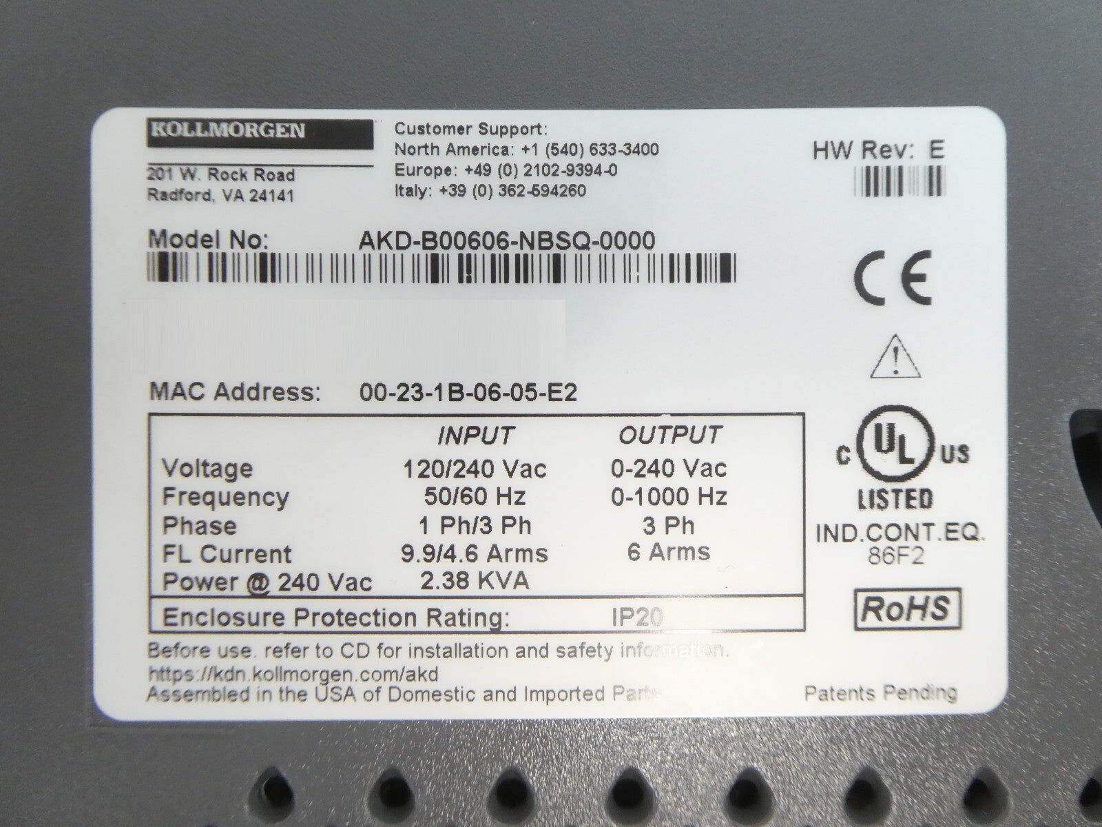 Kollmorgen AKD-B00606-NBSQ-0000 Servo Drive SynqNet New Surplus