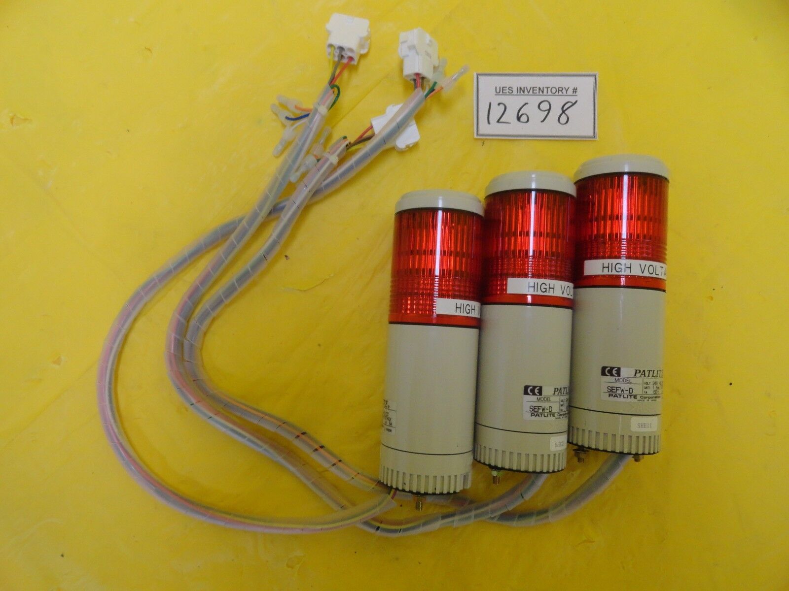 Patlite SEFW-D Modular Signal Tower 01820M Reseller Lot of 3 Used WorkingInventory # 12698This Patlite SEFW-D Modular Signal Tower is used working surplus. Sold as a Lot of 3. The physical condition is good, but there are signs of previous use and handling. There is a large, diagonal crack on the SHE11 unit's light casing (see photos). Specifications