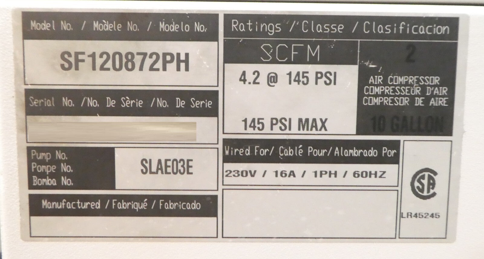 Powerex SF120872PH Clean Air Compressor SLAE03E Spectrometer Laboratory Untested As-Is