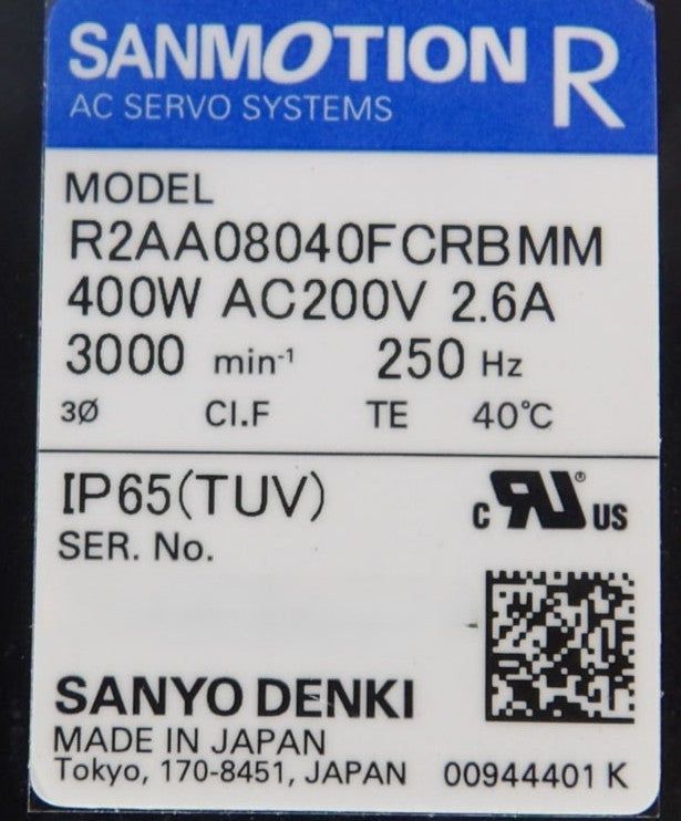 Sanyo Denki R2AA08040FCRBMM AC Servo Motor SANMOTION R Working