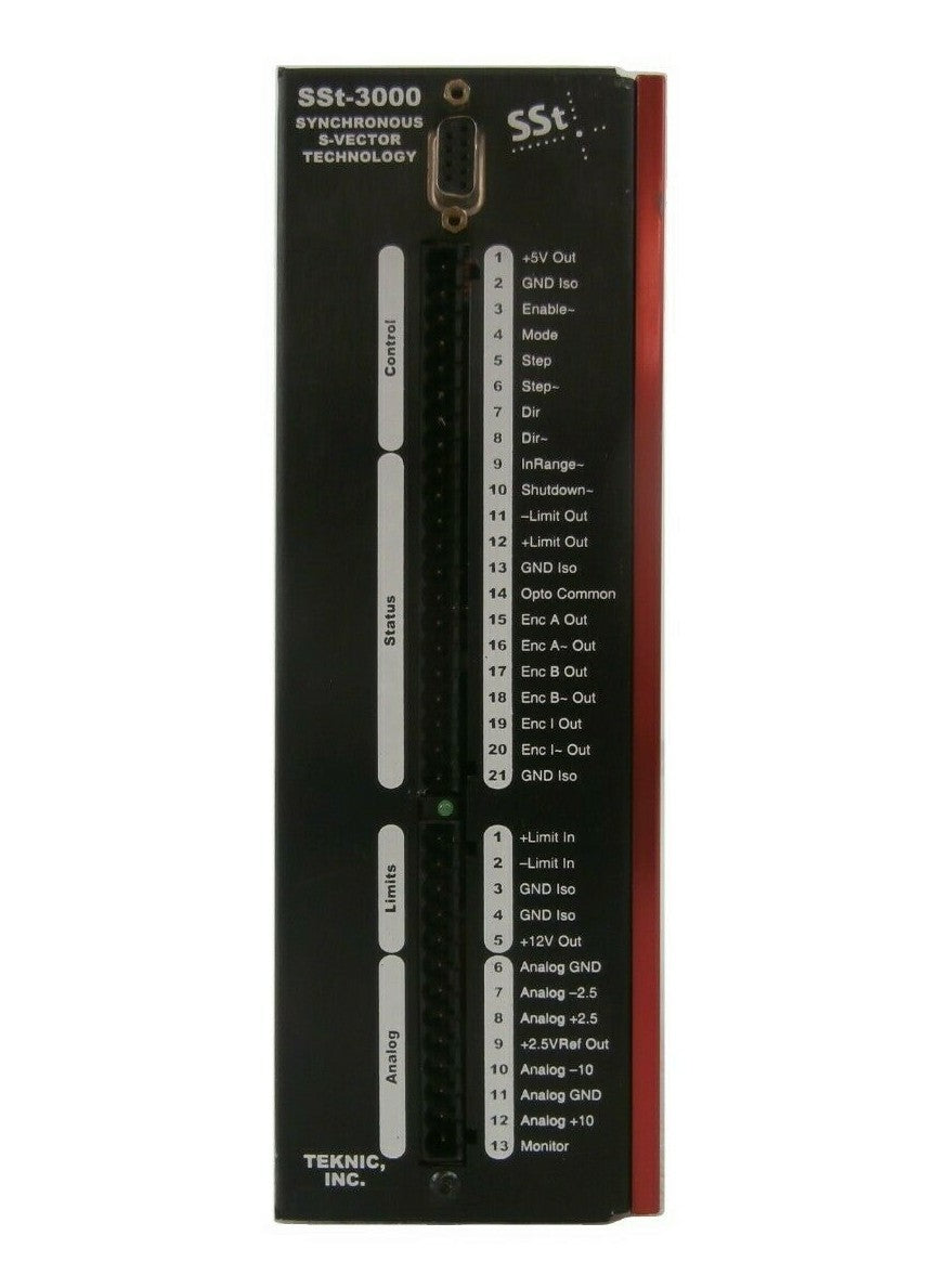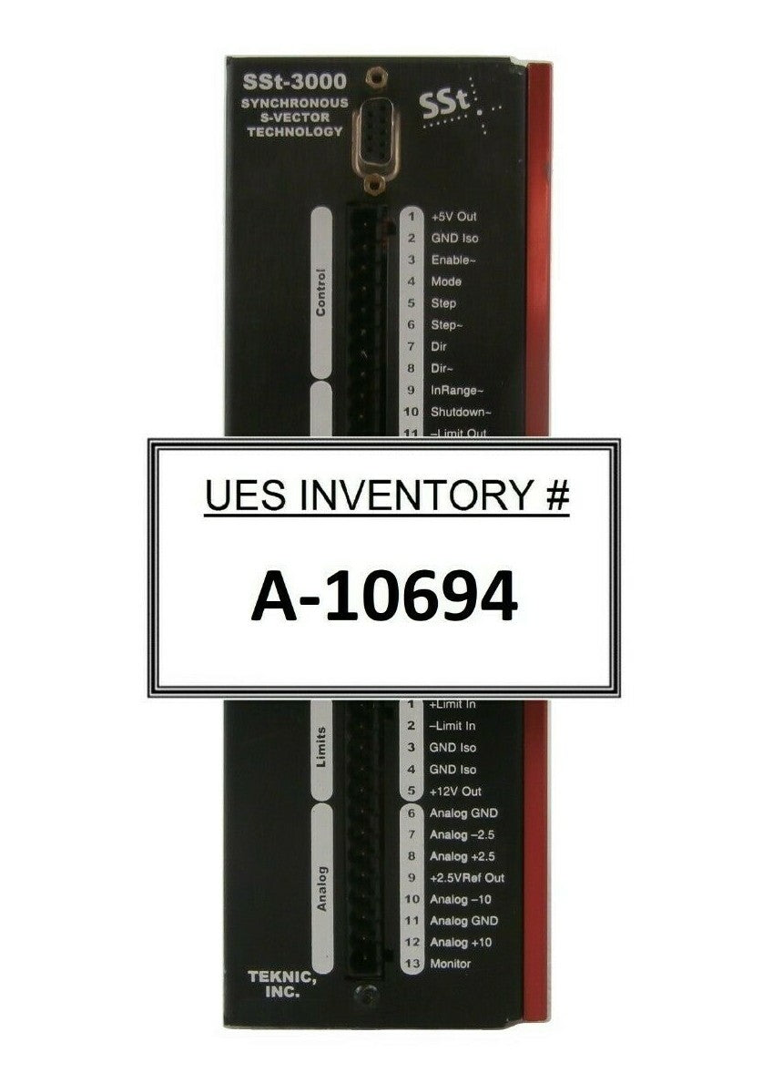 This Teknic SST-3000-829 Servo Drive is used working surplus. The physical condition is good, but there are signs of previous use and handling.