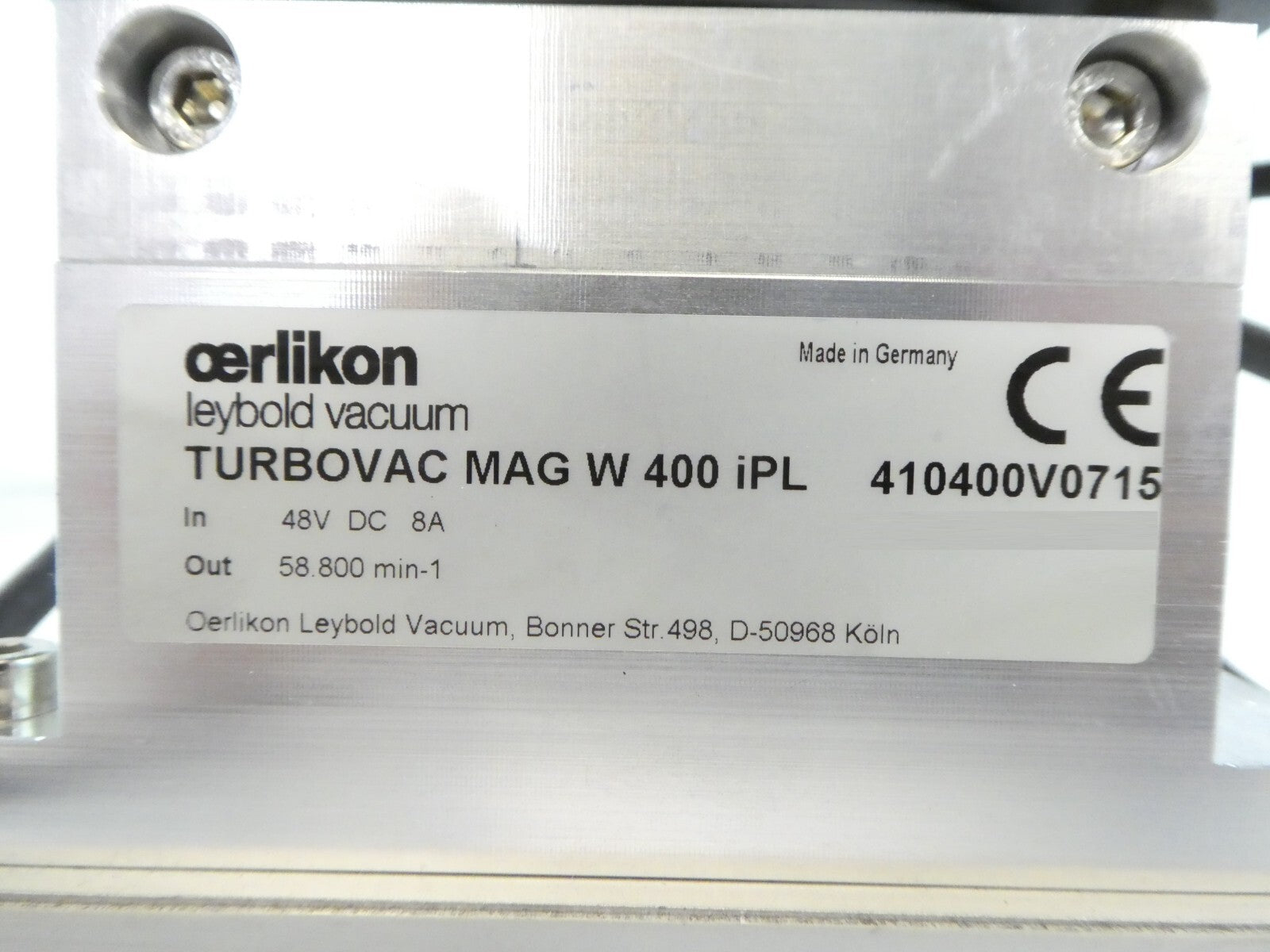 TURBOVAC MAG W 400 iPL Leybold 410400V0715 Turbo Pump MAG.DRIVE Error As-Is